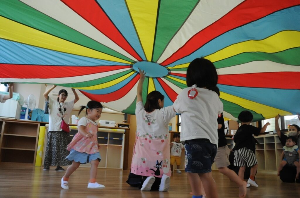 今日は新しい遊び、「バルーン」をしました。大きな風船みたいで、大興奮です!!