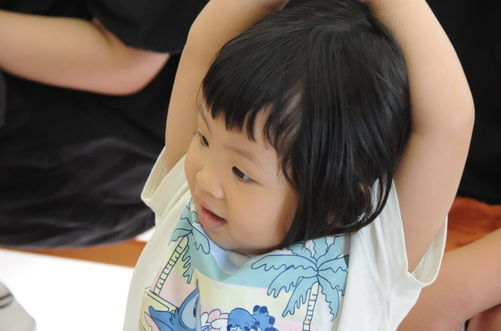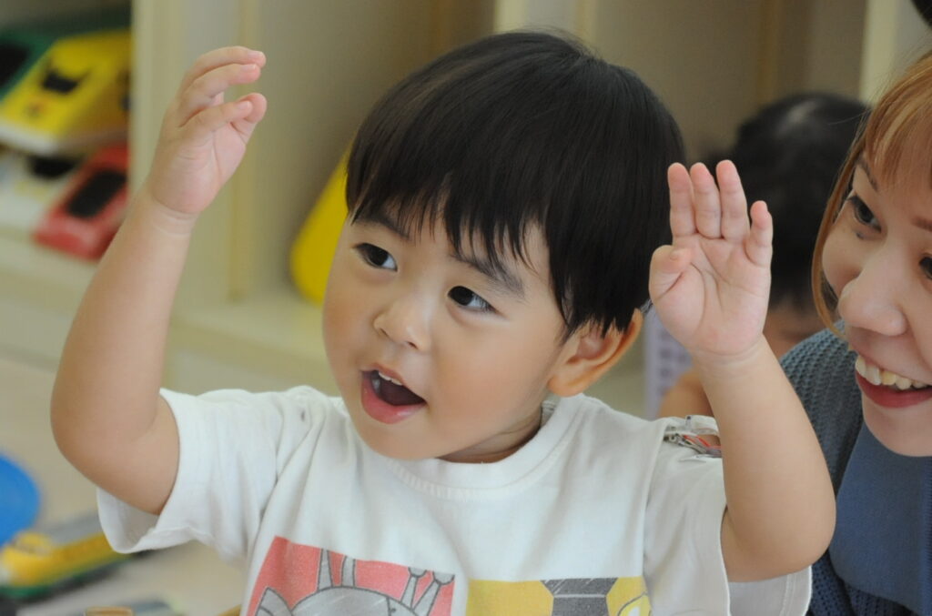 「次はお返事だよ、大きな声でお返事できるかな?」
