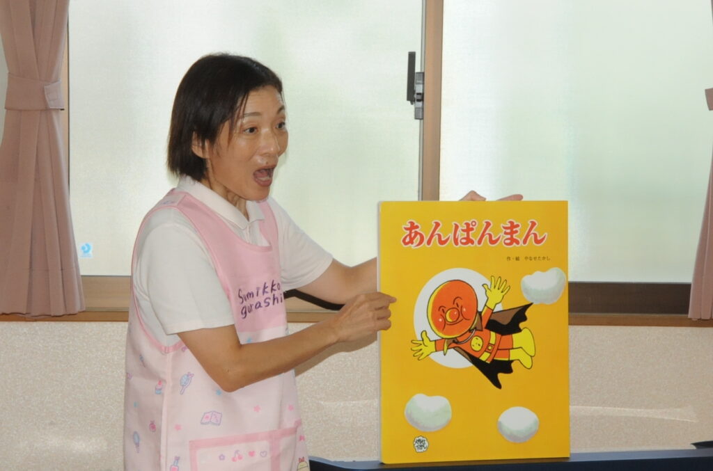 「おはなし、おはなし、今日は何を読もうかなぁ?」