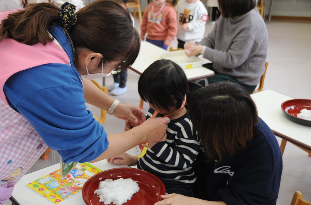 次回の「いちご教室」は、29日(木:満2歳児対象)ですが、残念ながら受け付け終了です。その次は、2月18日(水:満3歳児対象最終)、2月25月(水:満2歳児対象)、3月18日(水:満2歳児対象)に開催する予定です。園の行事の関係で中止することもありますので、ホームページでご確認ください。申し込みは2月2日(月)から始めます。定員になり次第締め切りますので、お早めに。是非ともお待ちしていますね。
