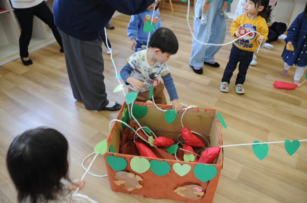 今日は5名のかわいい、いちごちゃんがやってきました。おいもほりごっこを楽しみます!!