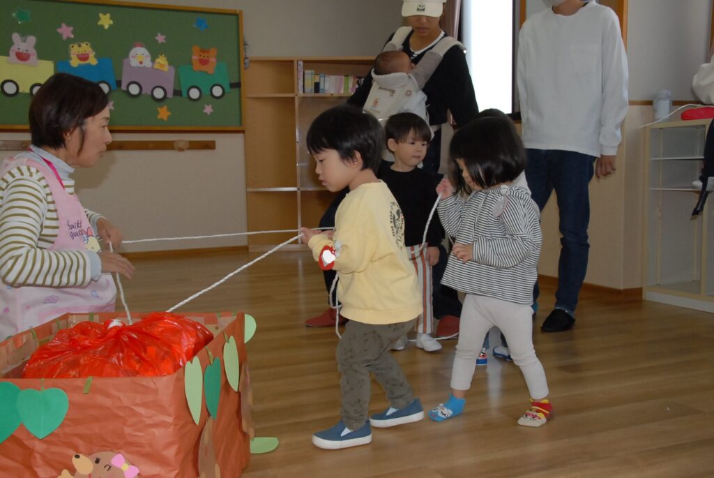 来月のいちご教室は、12月9日(火;観劇会鑑賞:参加費700円)・18日(木;クリスマス製作)に開催する予定です。9日の観劇会はすぎのこ劇団が来られます。楽しいですから、ご近所のいちごちゃんにも声をかけてください。11:00に遊戯室前に集合です。園の行事の関係で中止することもありますので、ホームページでご確認ください。申し込みは12月1日(月)から始めます。定員になり次第締め切りますので、お早めに。是非ともお待ちしていますね。