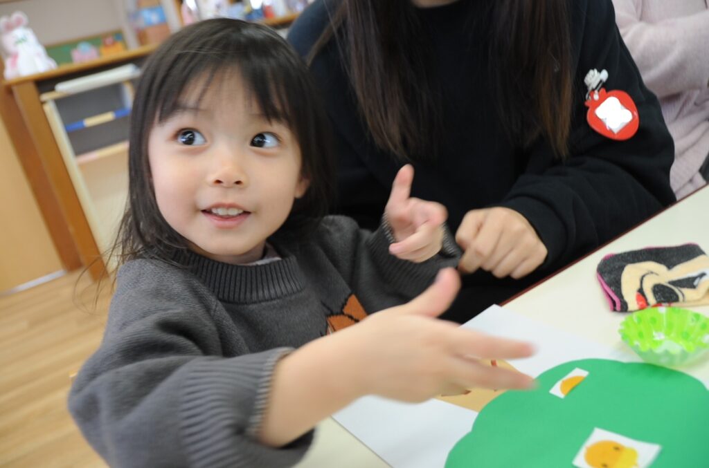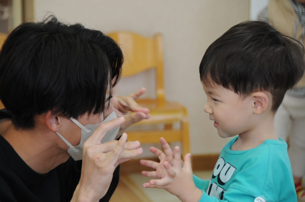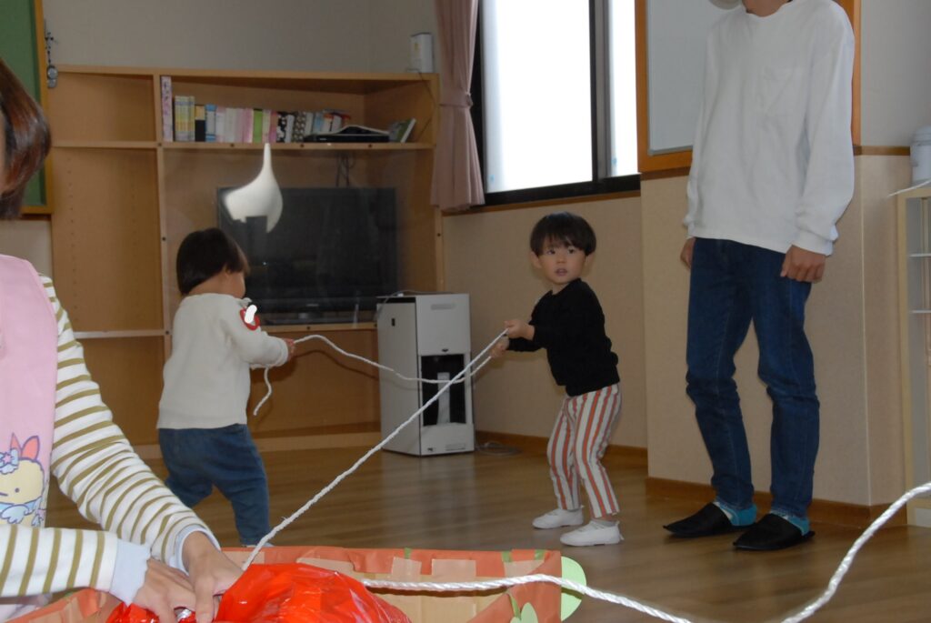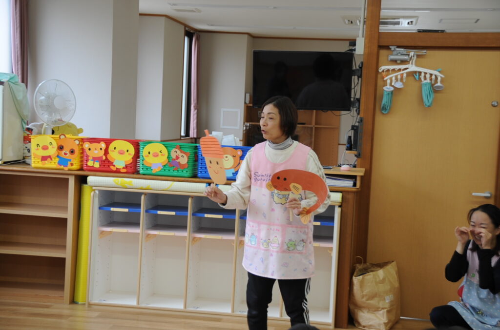 子ども達の方が大きな声でお返事してくれました!次は・・・