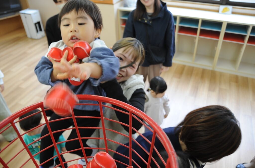 来月のいちご教室は、11月11日(火)・18日(火)に開催する予定です。園の行事の関係で中止することもありますので、ホームページでご確認ください。ボールで遊ぶ予定です!申し込みは11月4日(火)から始めます。定員になり次第締め切りますので、お早めに。是非ともお待ちしていますね。