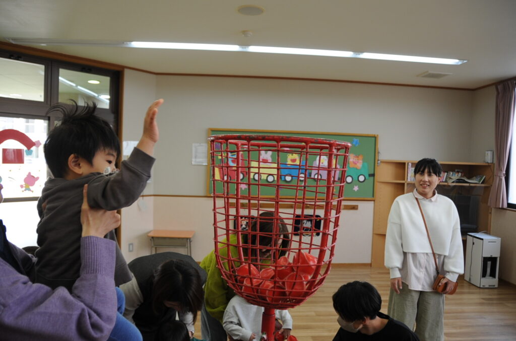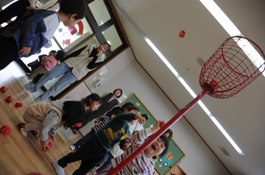 次は玉入れだぞ!なかなか、入りません。人生はそんなに甘くないみたいです!