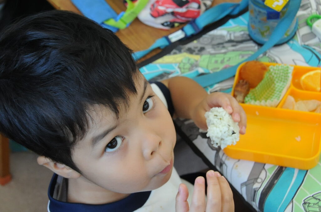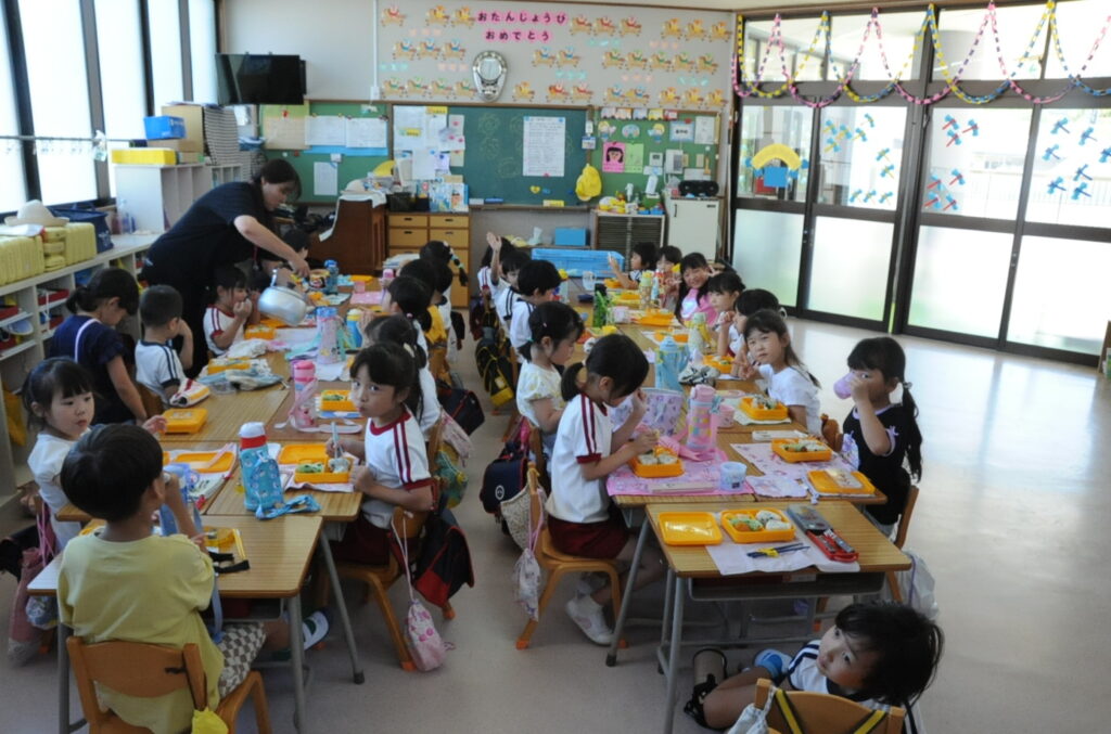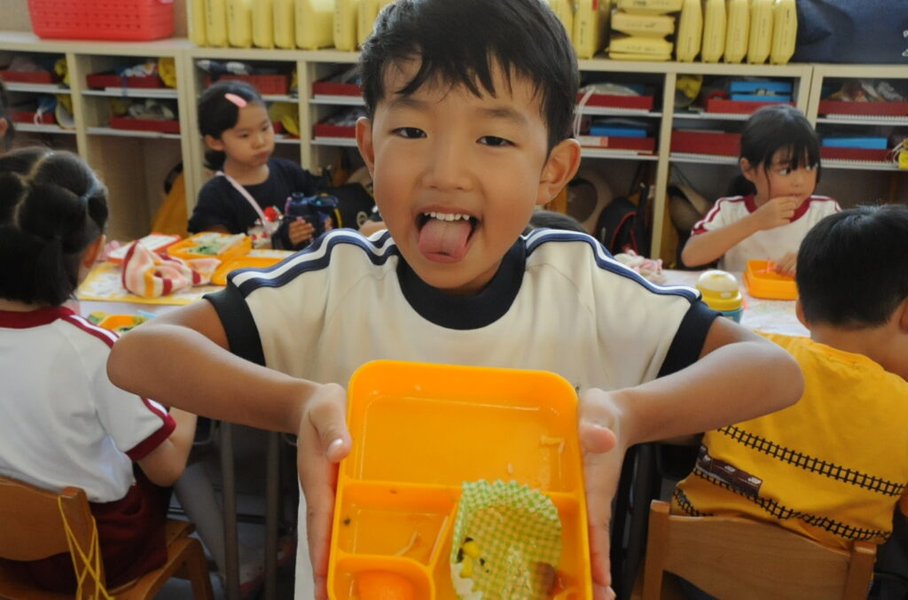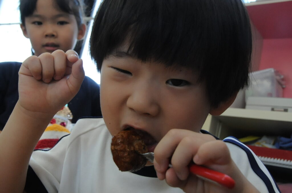 あやめ組は、どの子もお友達と楽しく食べていました。しっかり食べることができるあやめ組さんは明るく元気です。「食べる子は育つ!」です。がんばりましょう!!