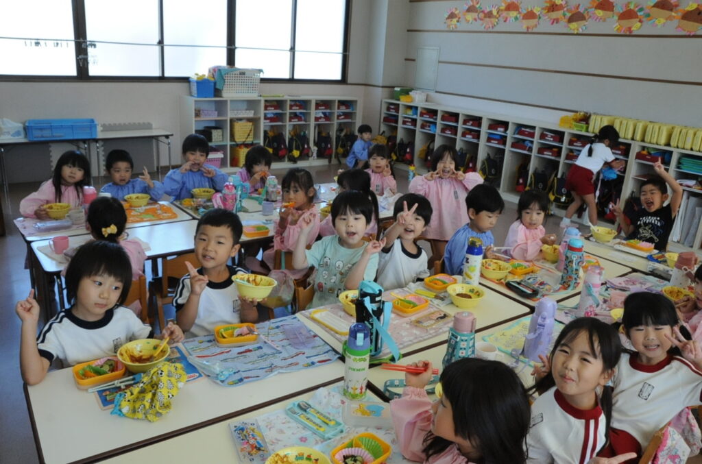 ばら組は、お友達と仲良く食べていました。わいわいと楽しく食べることができるばら組さんは、みんな仲良しです。「食べる子は育つ!」です。がんばりましょう!!
