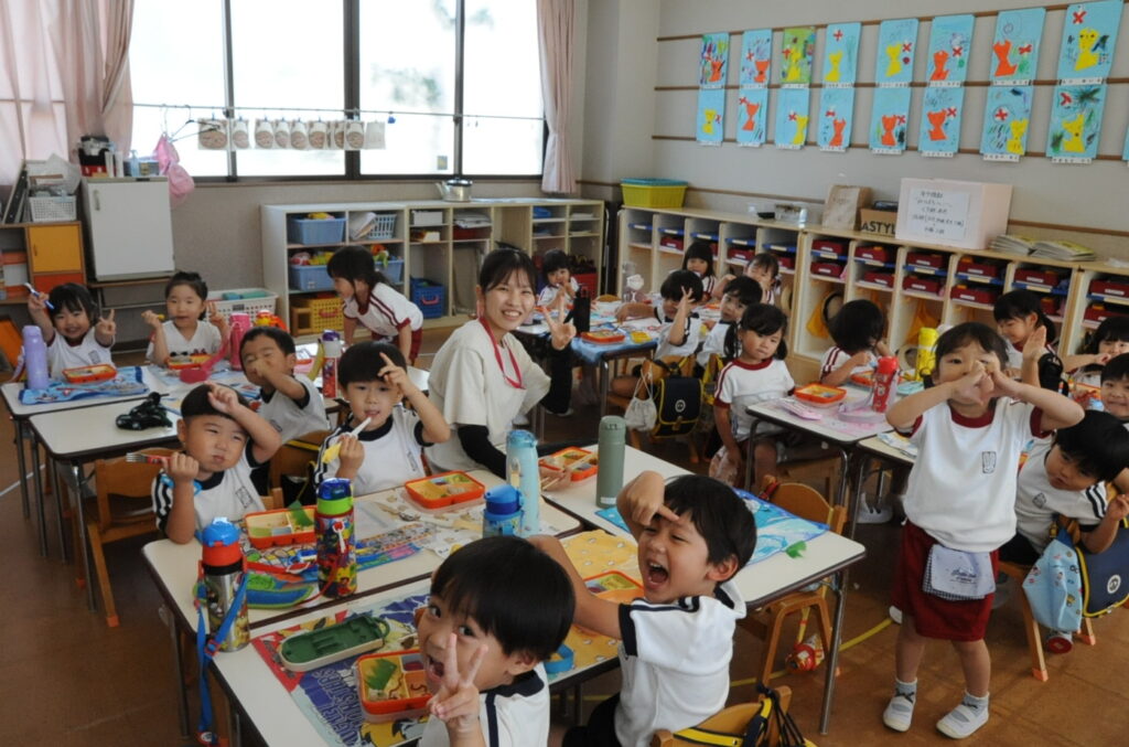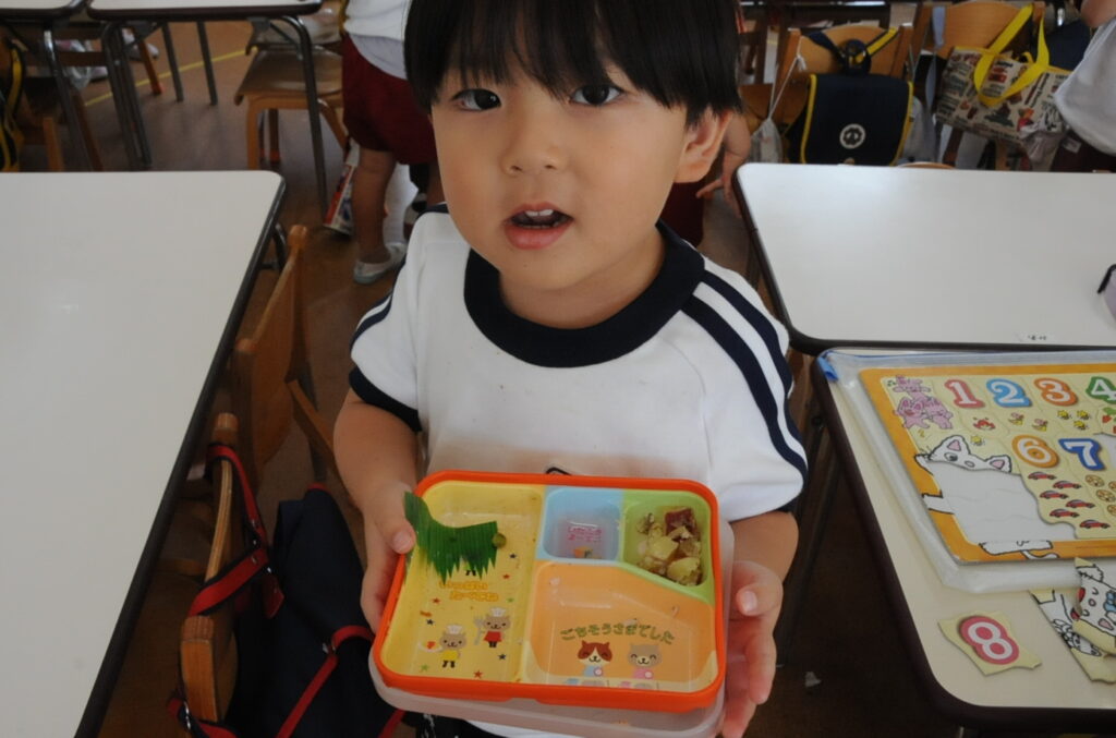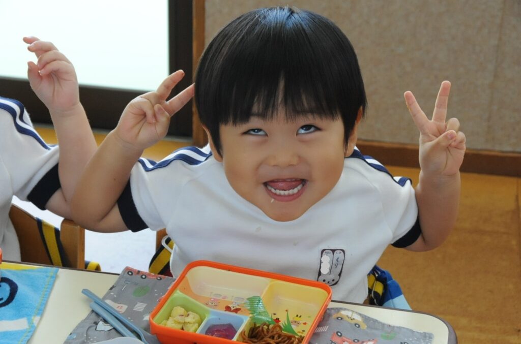 くり組は、どの子もお友達と楽しく食べていました。役者が多くて、面白い顔をしてくれる子がたっくさん。くり組さんは明るく元気です。「食べる子は育つ!」です。がんばりましょう!!