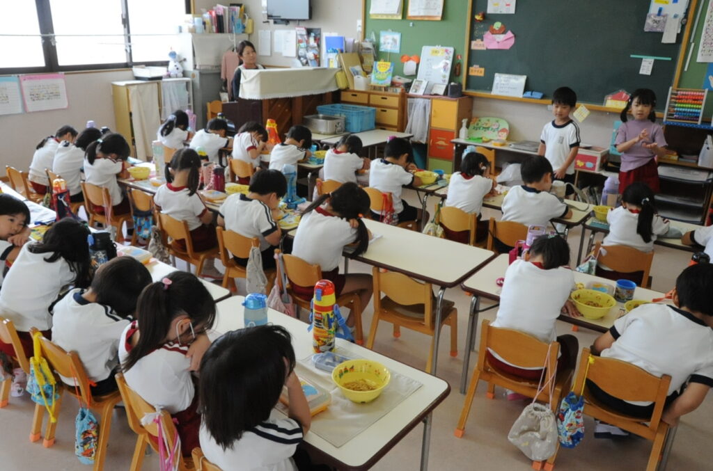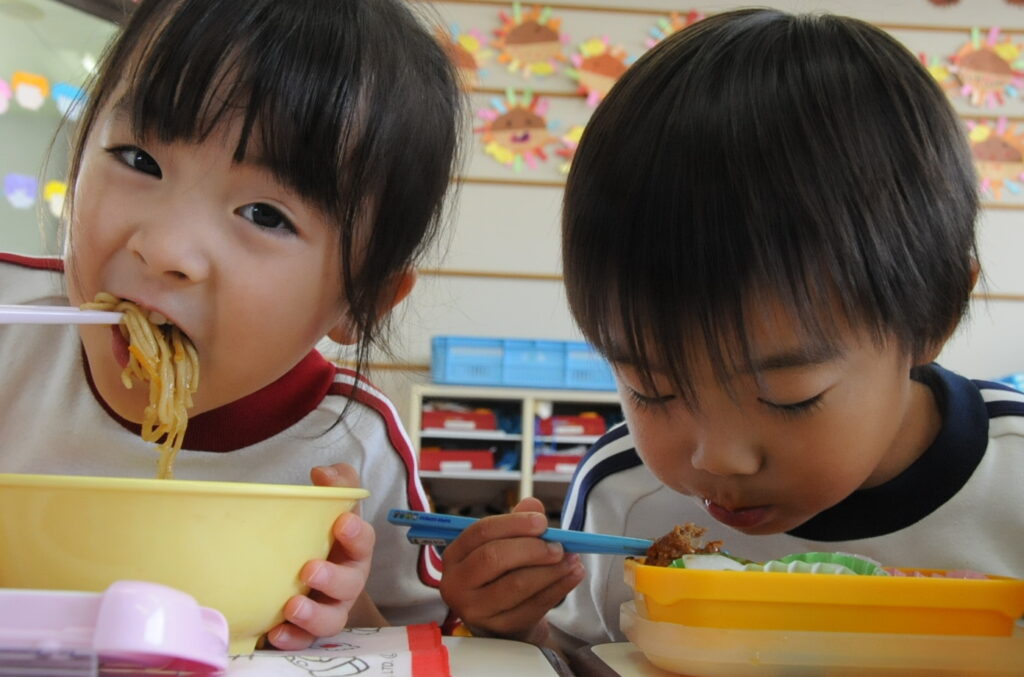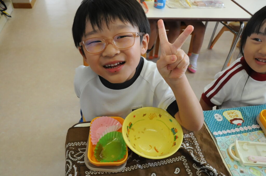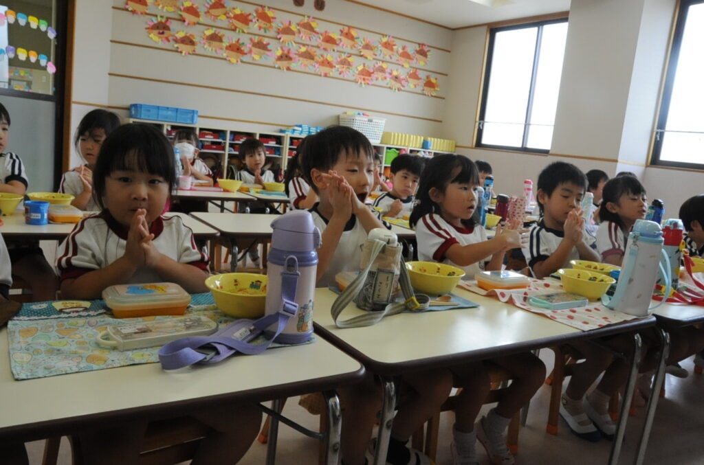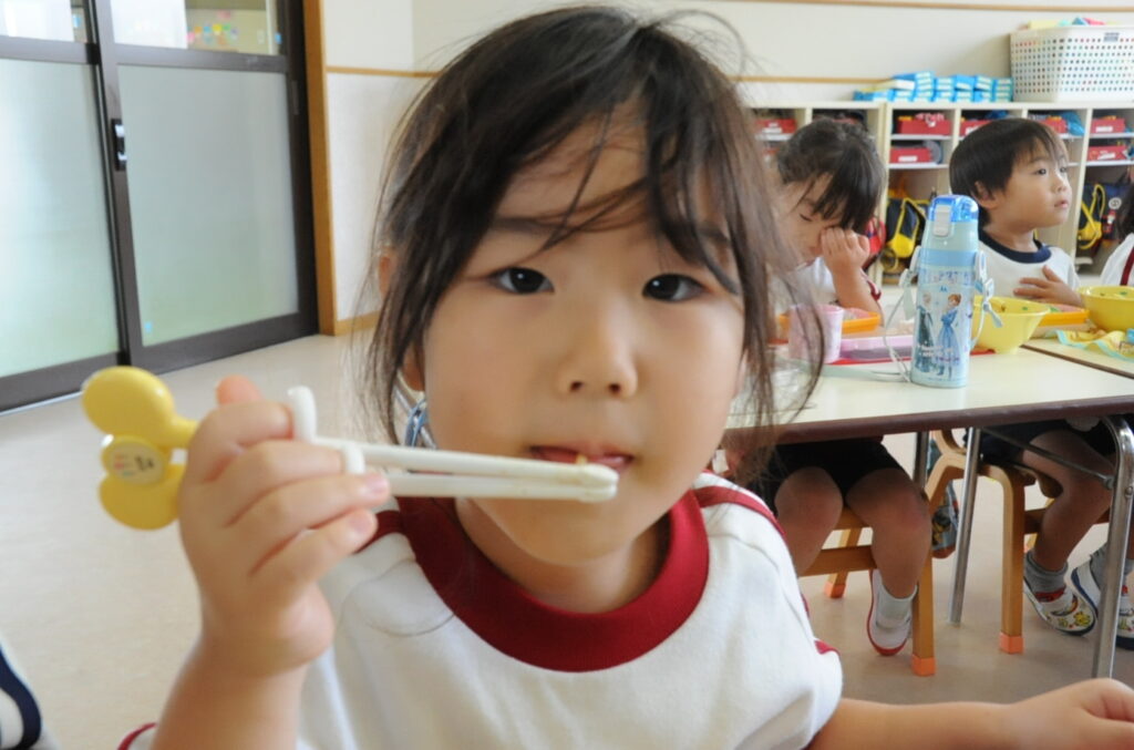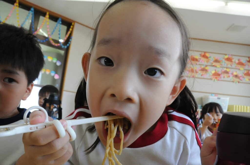 ゆり組は、お友達と楽しく食べていました。仲の良さがクラス全体に表れています。たくさん食べる子は元気です。「食べる子は育つ!」です。がんばりましょう!!