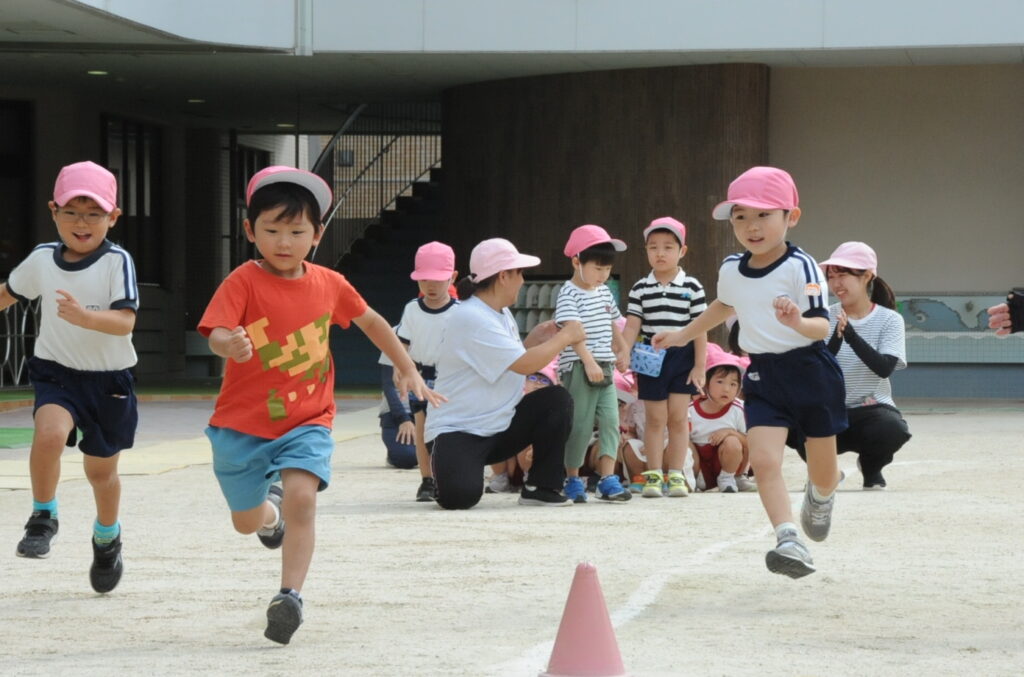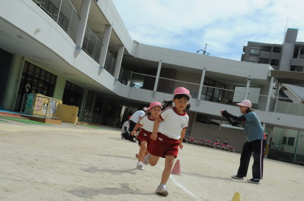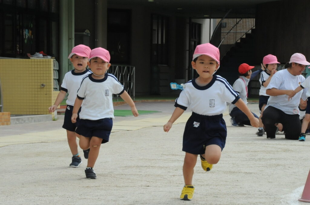 運動会まであと8日。練習が白熱してきました。年少さんは、かけっこを練習しました。はじめは、走るのがやっとでしたが、なんとなくかっこよく走ることができるようになりました。時には、トラックを走らず、フィールドを横切って近道を走る子もちらほら。これは、ご愛敬ですね!!