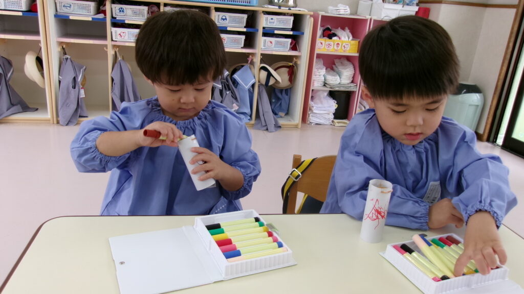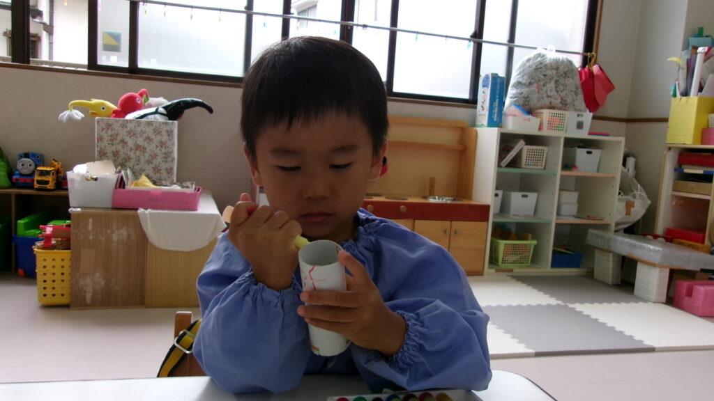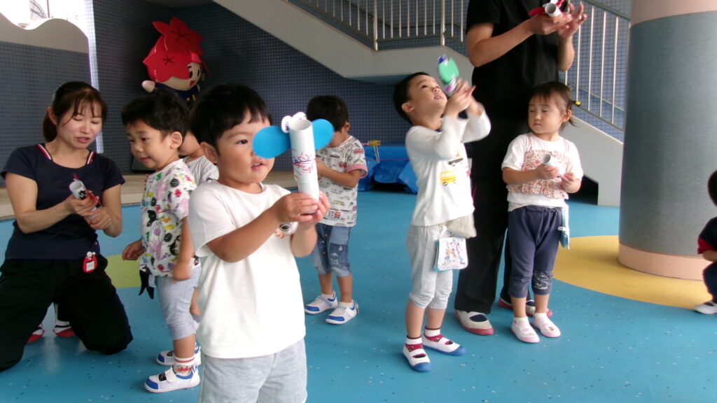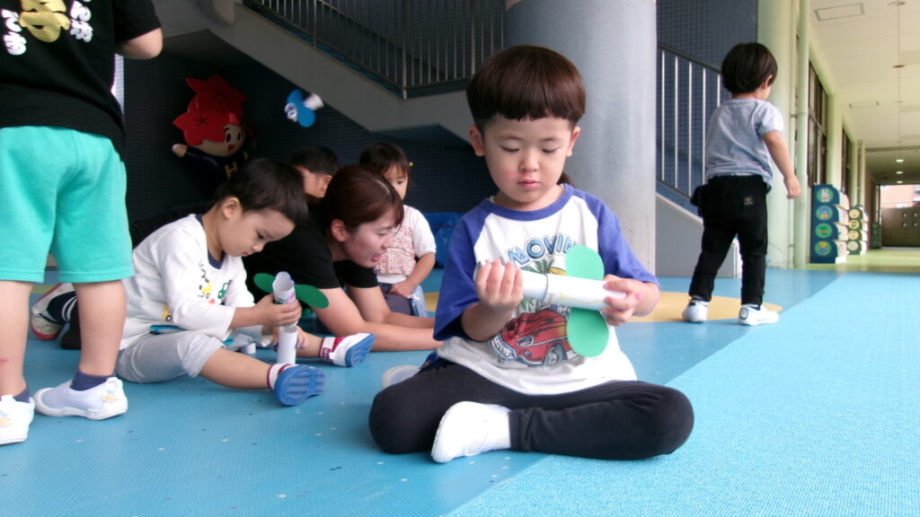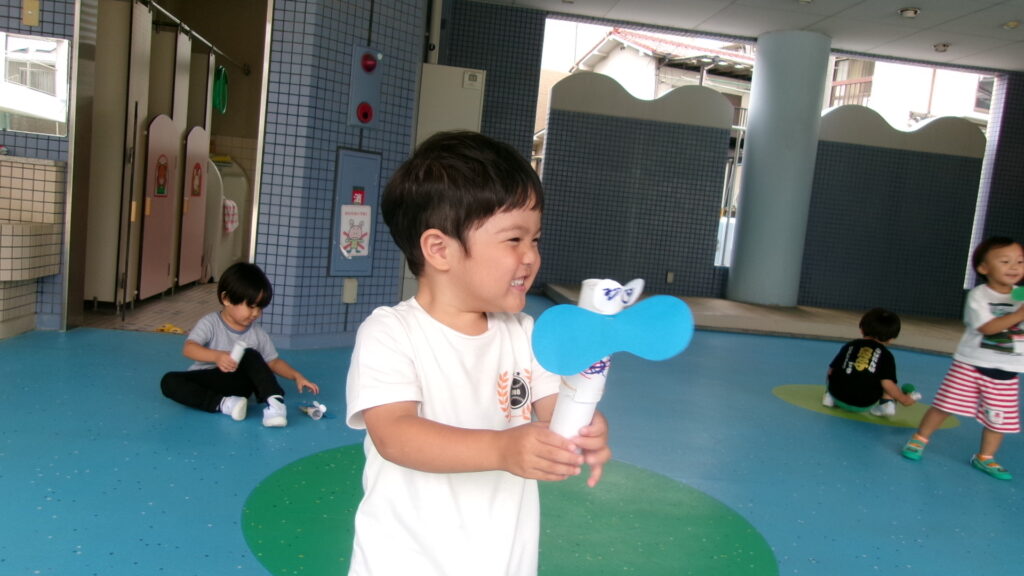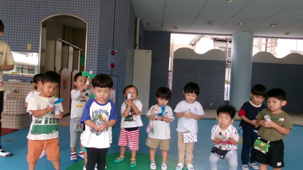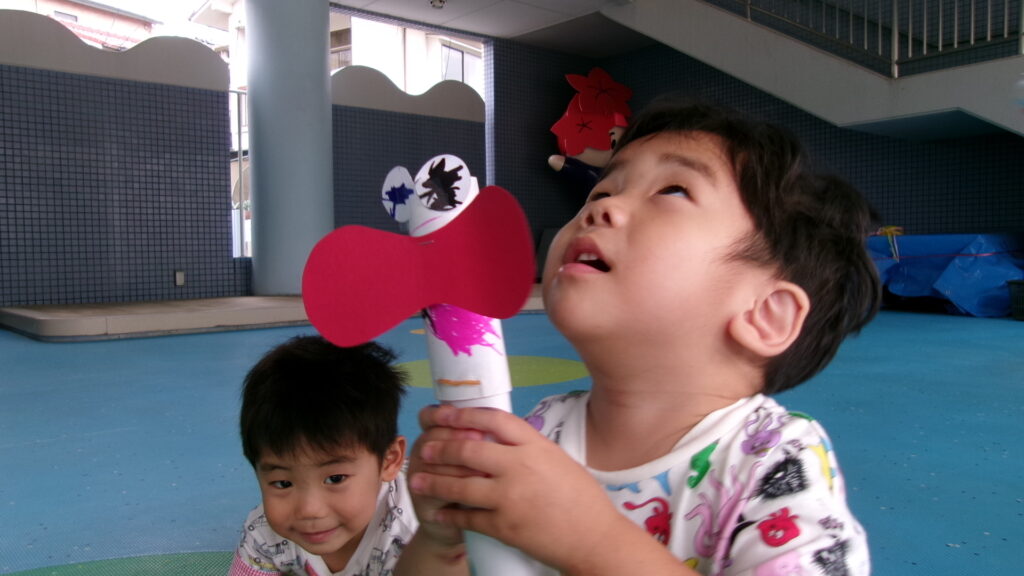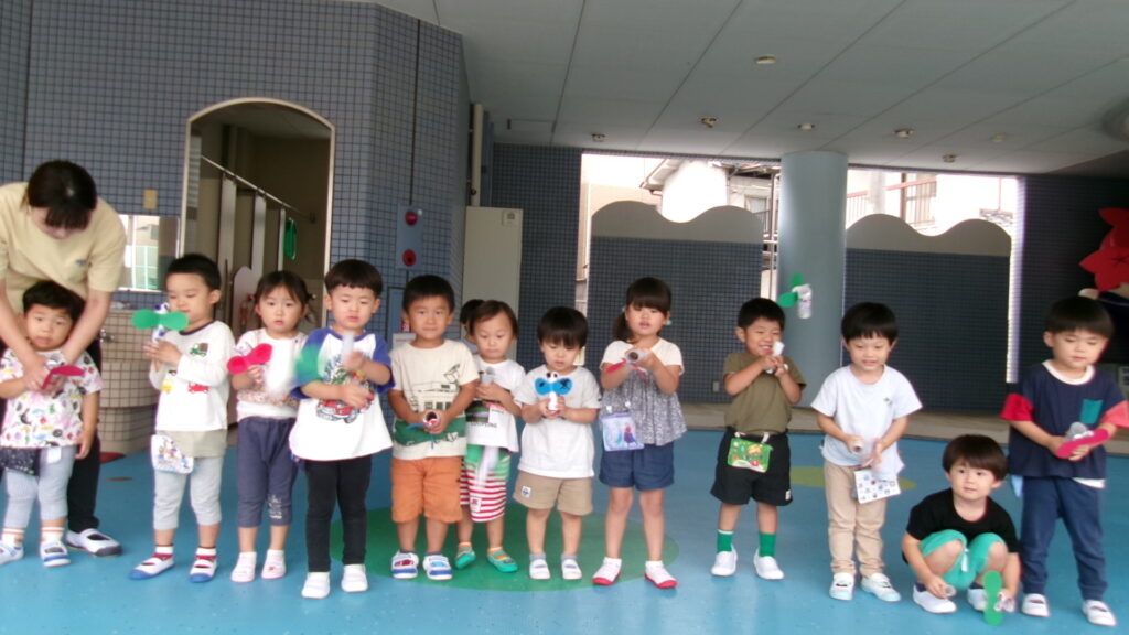 今週も元気いっぱいのまつ組さんでした。今日は、あいにくの雨だったので、みんなでとんぼを作って、飛ばして遊びました!!