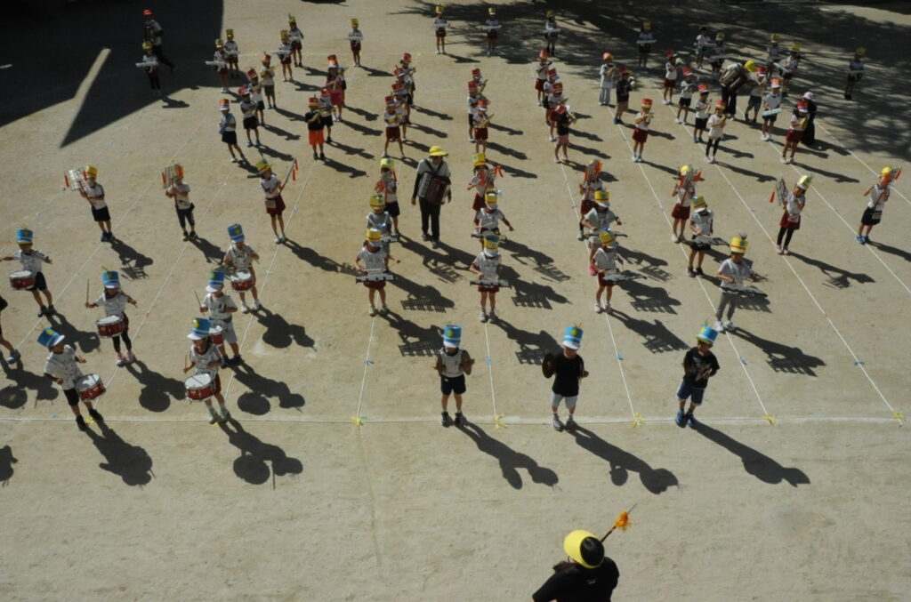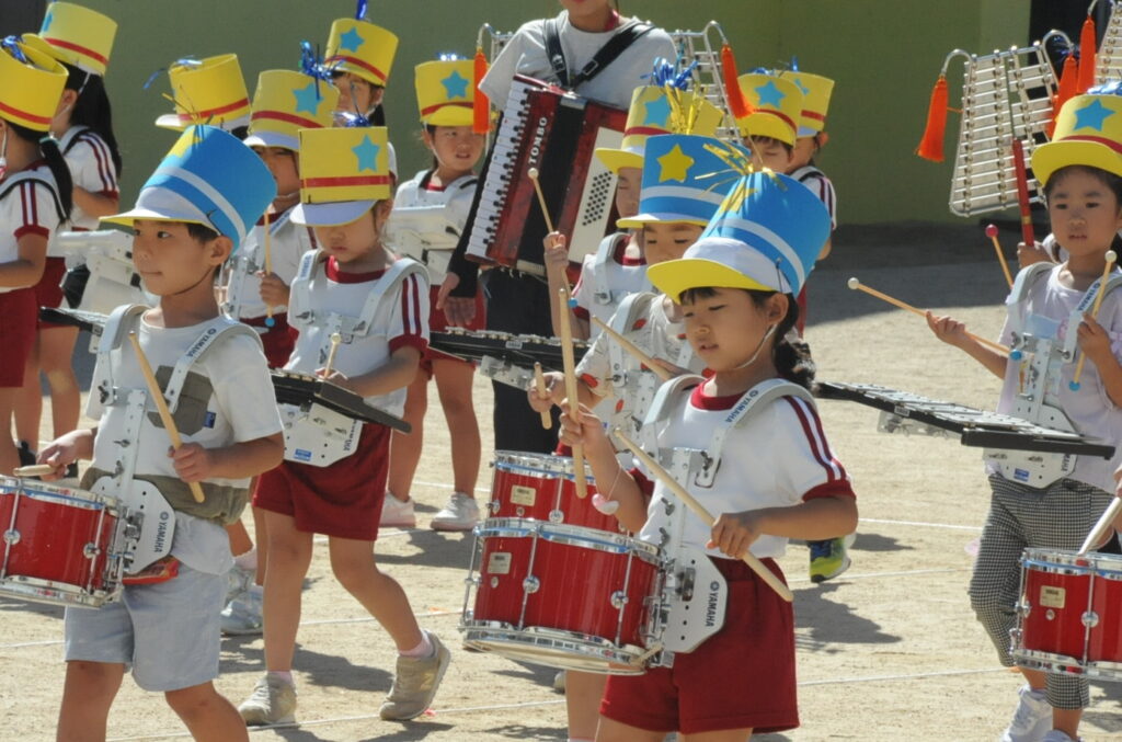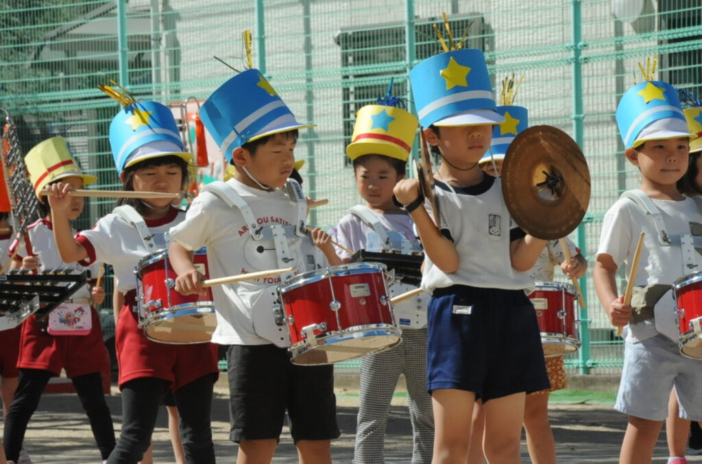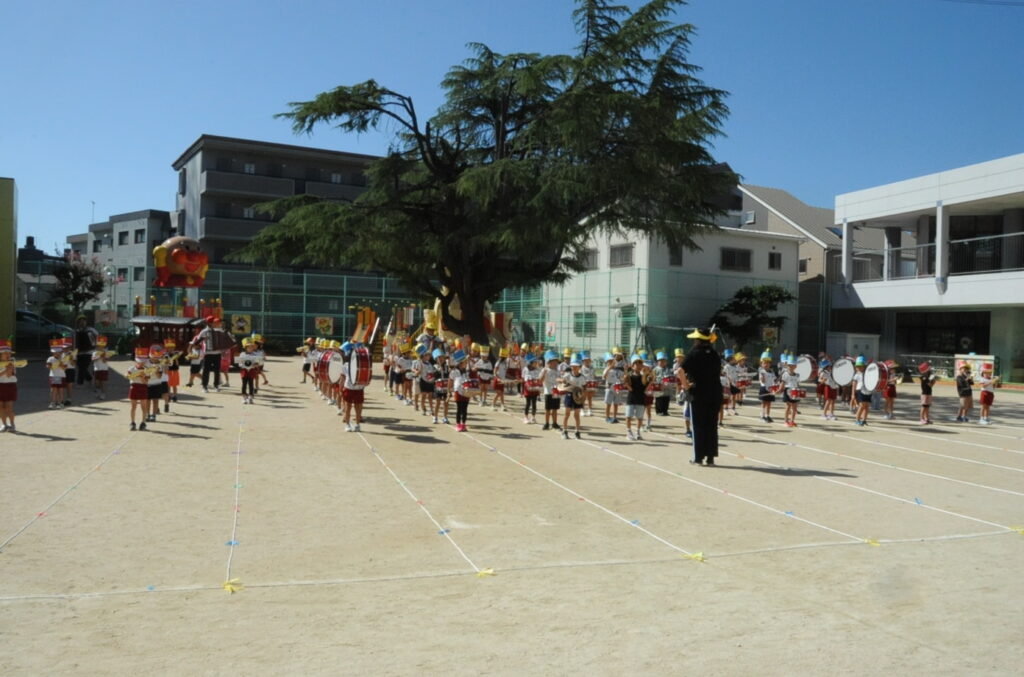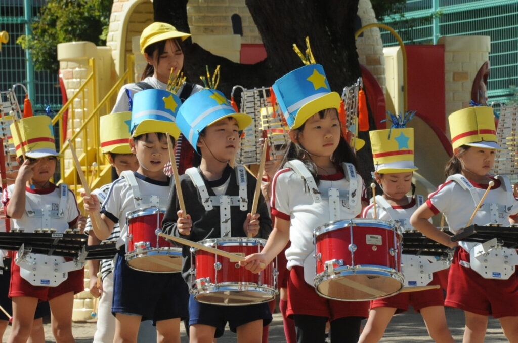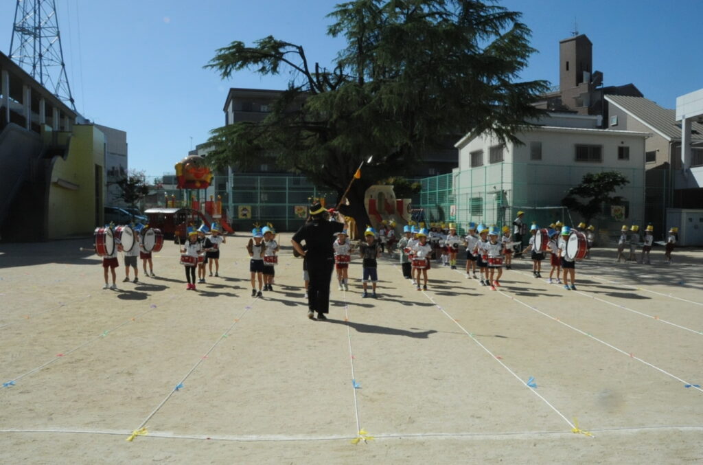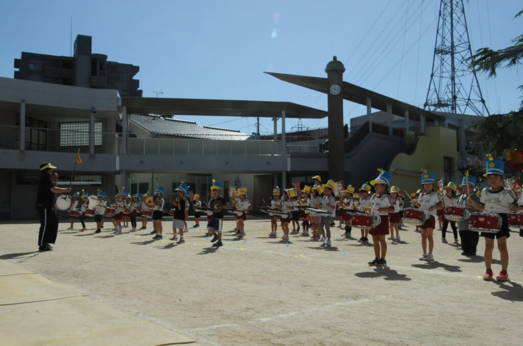 明日は、第61回運動会です。どの学年もラストスパート!年長さんが行う「楽隊」は、なんと昭和40年代から続く祇園幼稚園伝統の種目です。今年も、気合いを入れて練習に励みました。