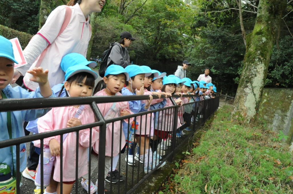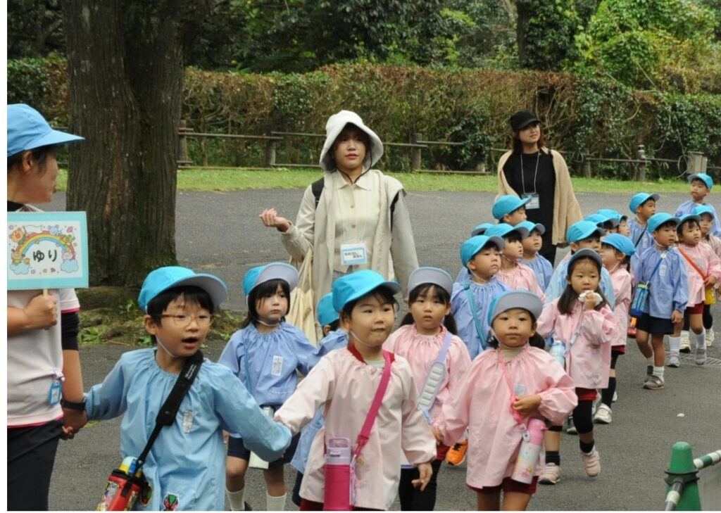 今週は、遠足ウィークです!2日目、年中さんです。今にも雨が降りそうな曇り空・・・、でも子ども達のパワーで雨だけは避けますよ!!全員いい気分でウキウキ、ランラン。さあ、出発だ~!!なお、写真のコメントは、いつものように制作者の想像です!あしからず!!