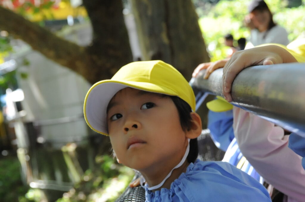 今週は、遠足ウィークです!最終日、年長さんです。今日は、先日と違って秋晴れ!というよりも残暑!!あっちぃ!!でも、子ども達はウキウキ、ランラン!!さあ、出発だ~!!なお、写真のコメントは、いつものように制作者の想像です!あしからず!!