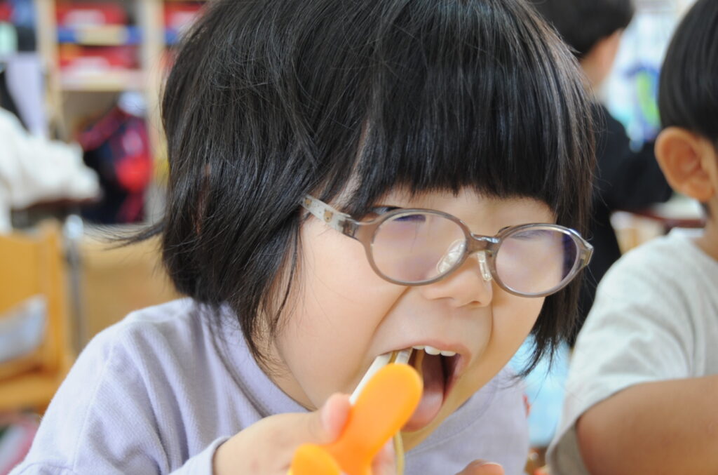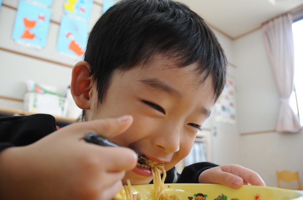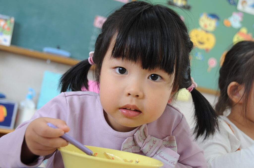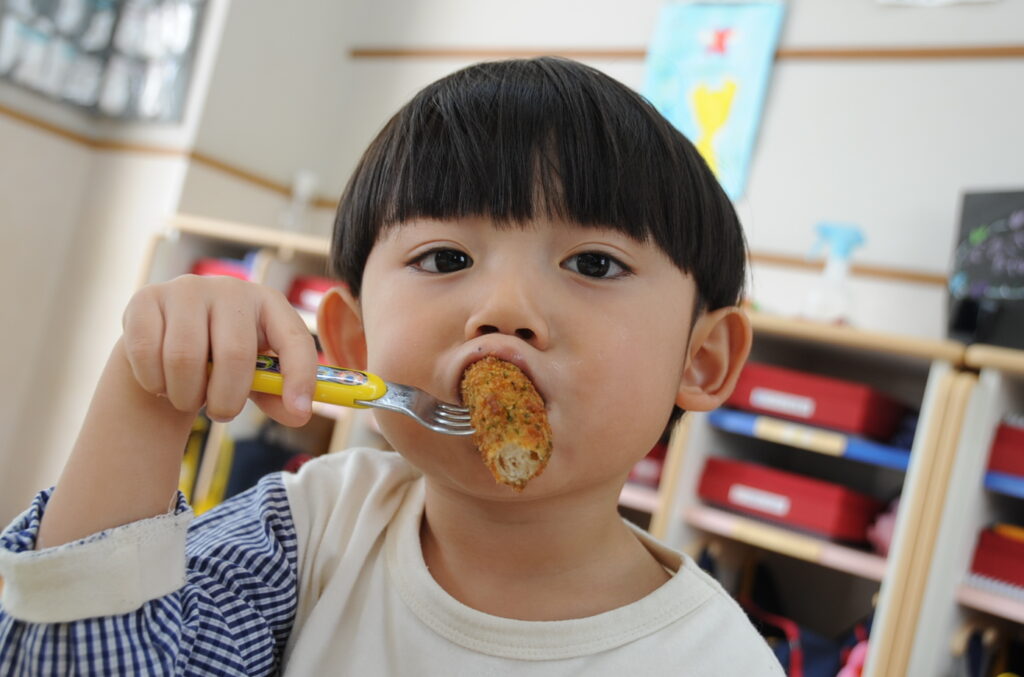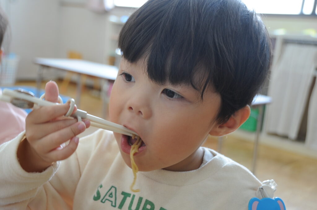 もも組は、どの子もお友達と楽しく食べていました。もも組さんは明るく元気です。「食べる子は育つ!」です。がんばりましょう!!