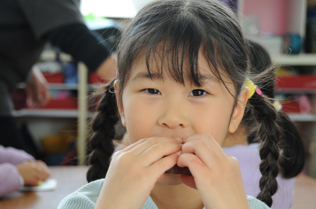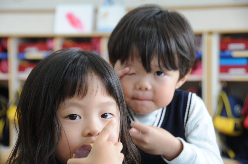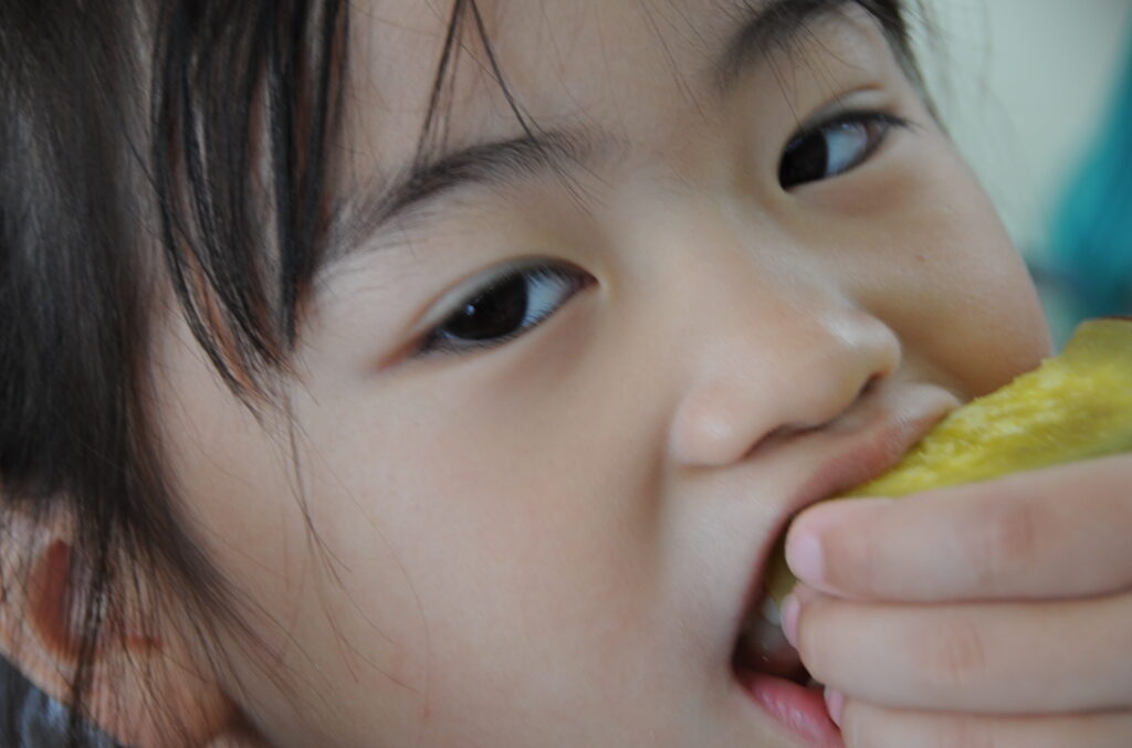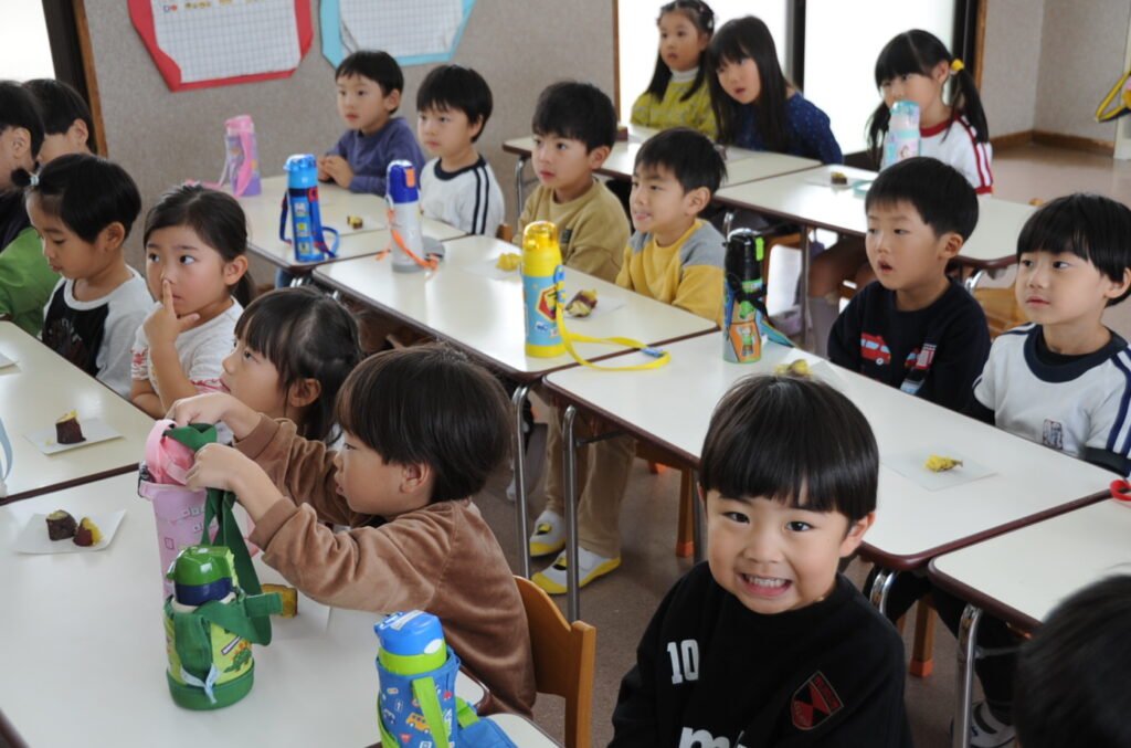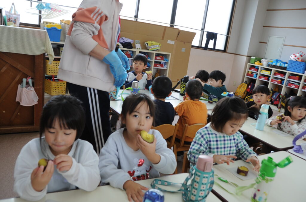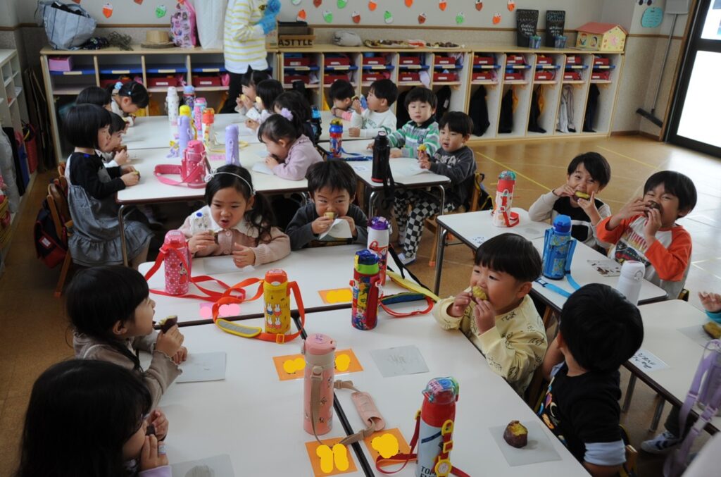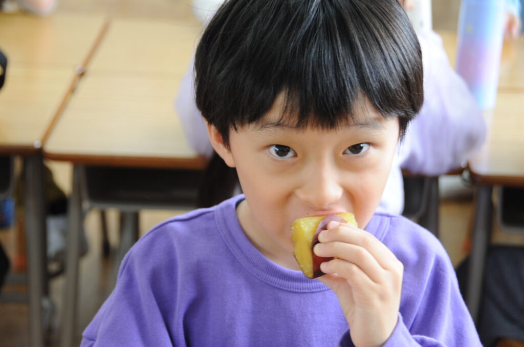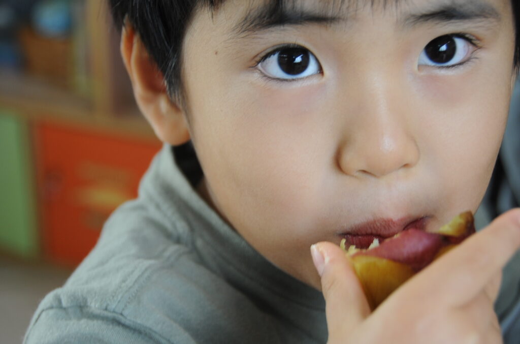 今日は、おいもの試食会です。年中さんが掘ってきたおいもをみんなでおいしくいただきます。ほっくほっくで、おいしいですよぉ!!なお、写真のコメントは、いつものように制作者の想像です!あしからず!!
