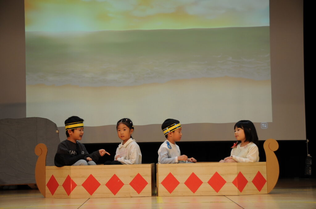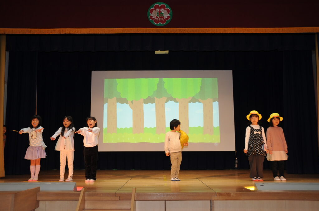 今年度より各学年1組ずつ発表する3部制にしています。年少から、年中、年長と発達段階に沿った子ども達の成長ぶりをぜひとも見ていただきたいと考えています。我が子の発表が終わっても帰らず、最後までご覧ください。絶対、楽しいですから!!
