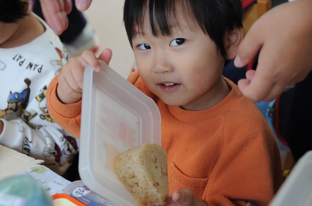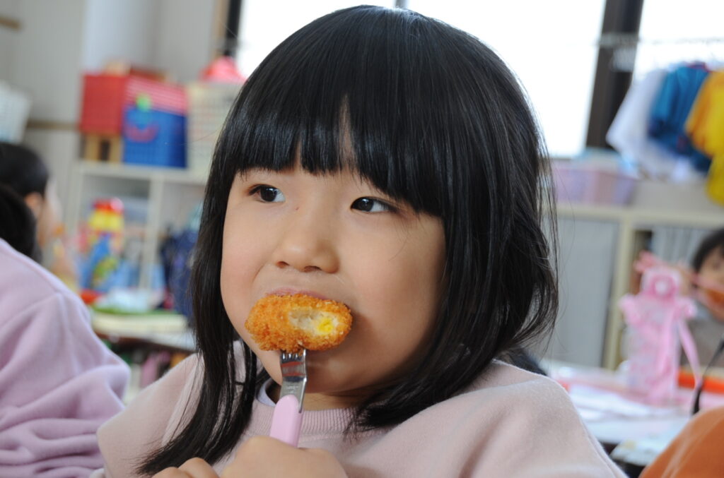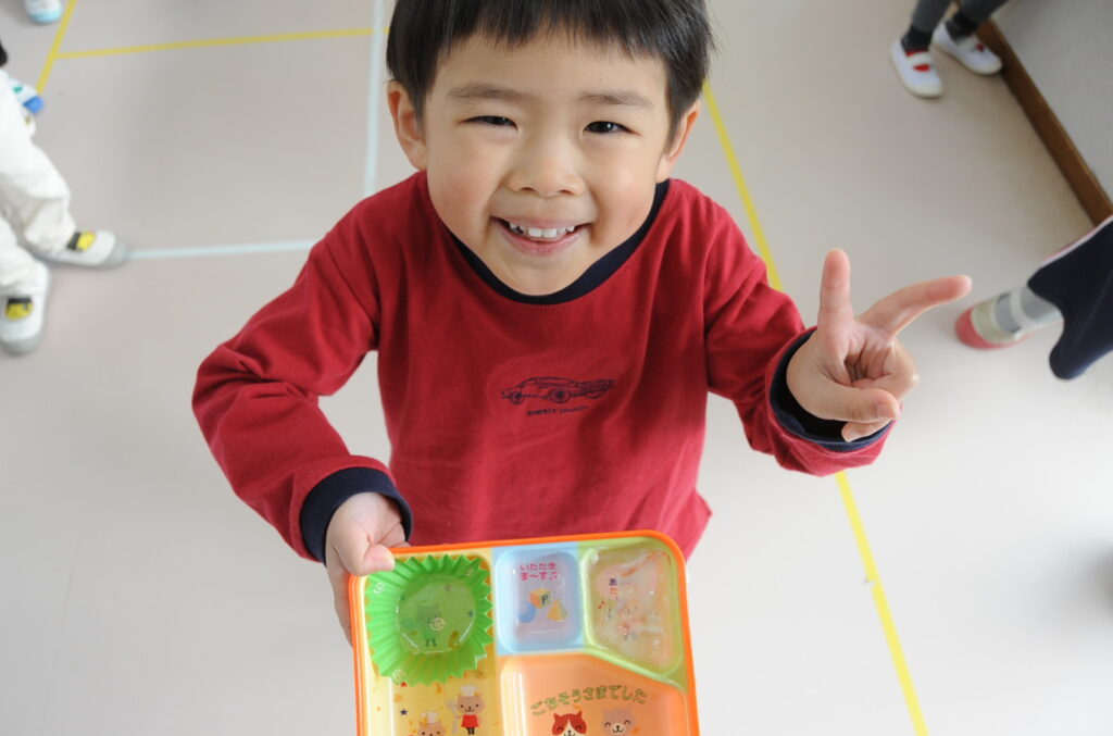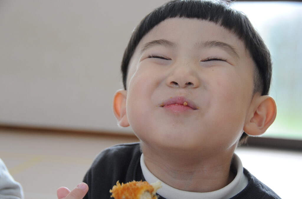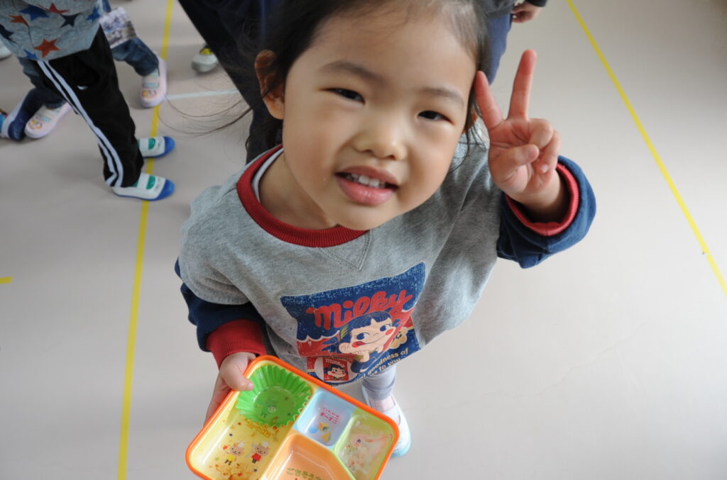 かき組は、たくさんの子が完食していました。しっかり食べきることはとても大切です。これは大きくなりますよぉ。かき組の子ども達、元気いっぱいです。頼もしい限りです。「食べる子は育つ!」です。