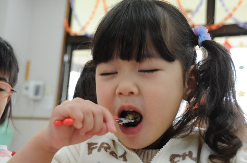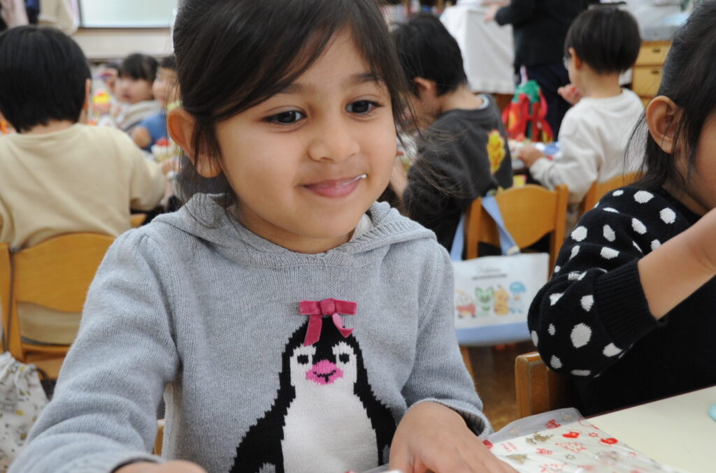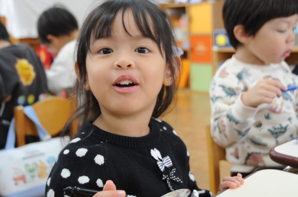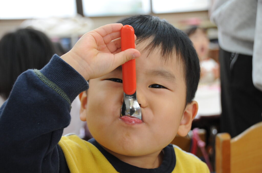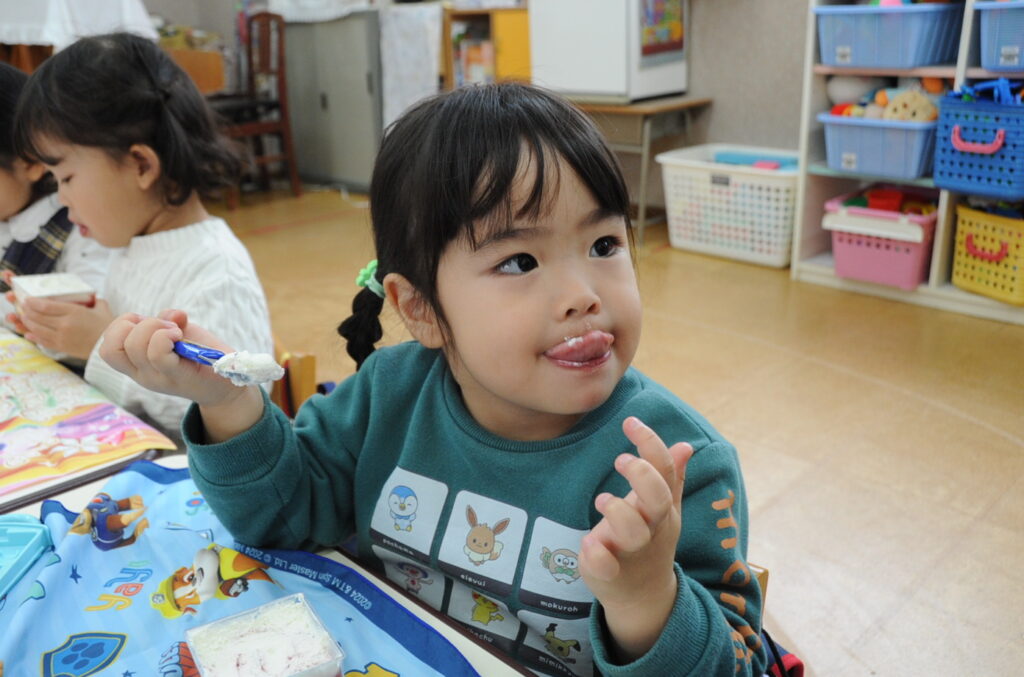 今日は、12月生まれの子ども達のお誕生日会です。いつもは乳酸飲料とお菓子ですが、今日はなんとケーキが出ました、12月ですから。子ども達の目の色がいつもと違います。まさに”ひと味違うお誕生日会”になりました!なお、写真のコメントは、いつものように制作者の想像です!あしからず!!