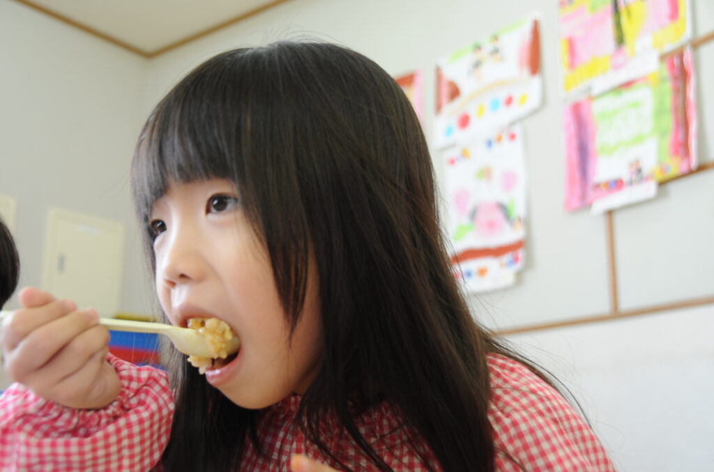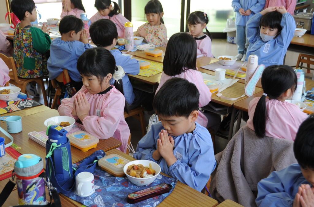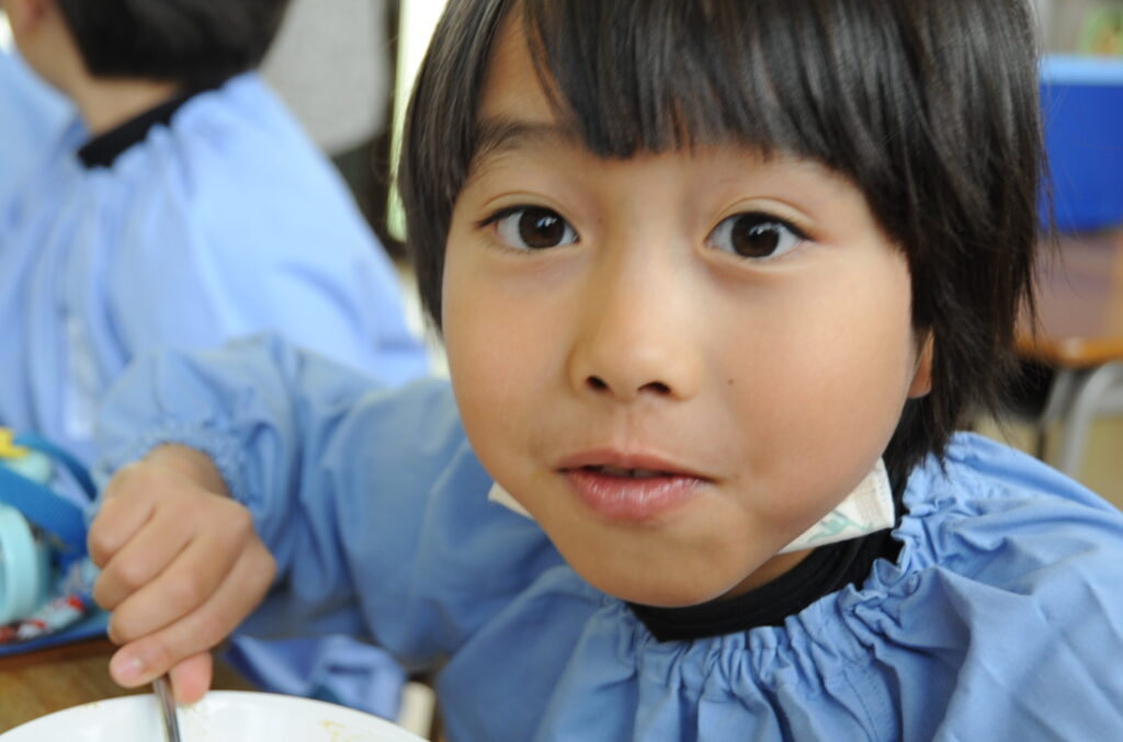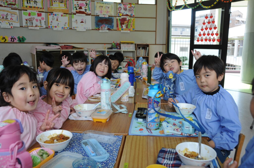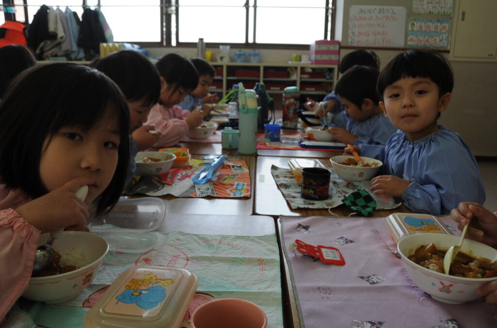 はい、すみれ組の皆さんは、今日もおいしくいただきました。「ごっちそうさまでしたぁ!!」