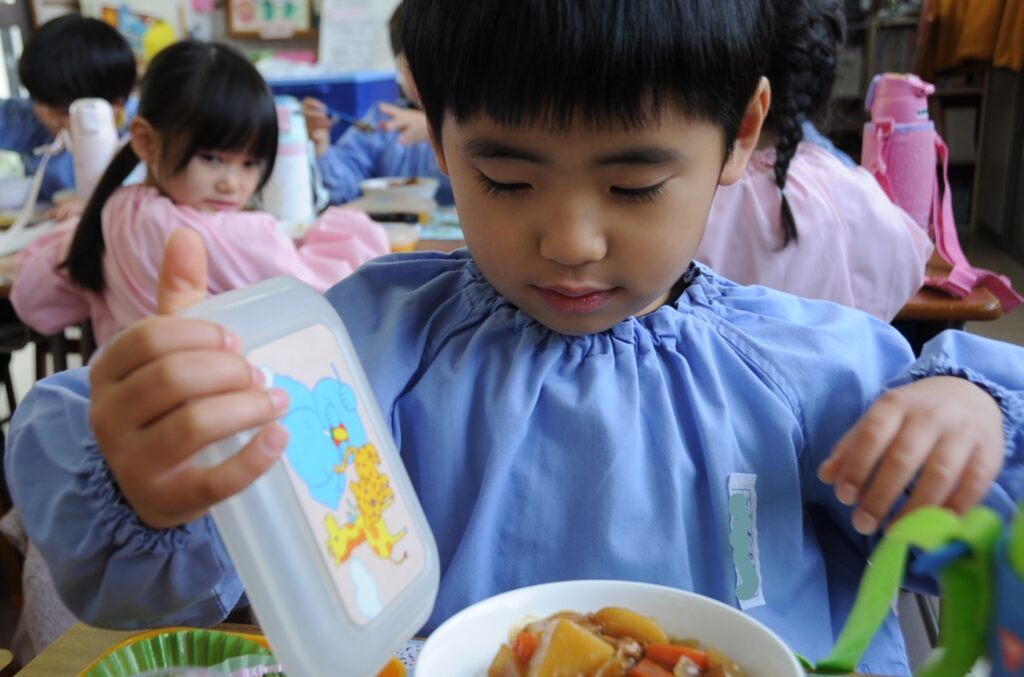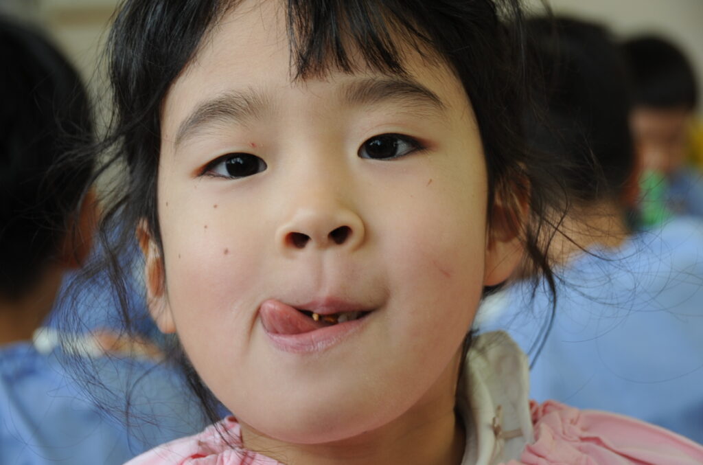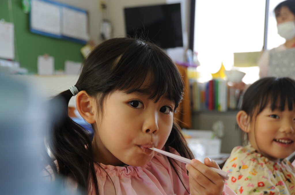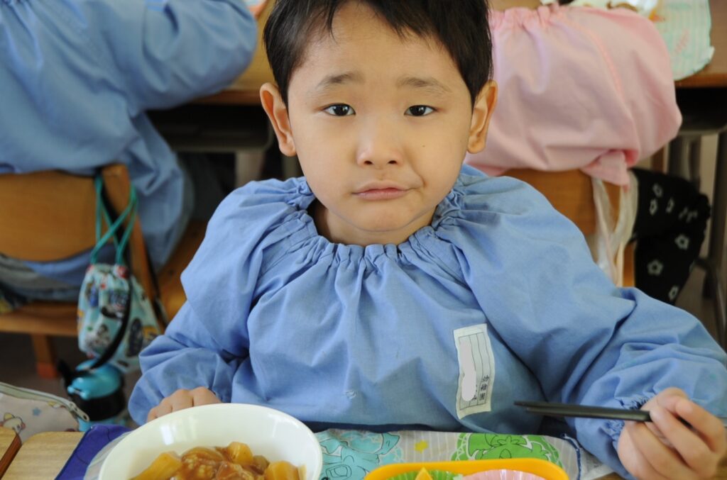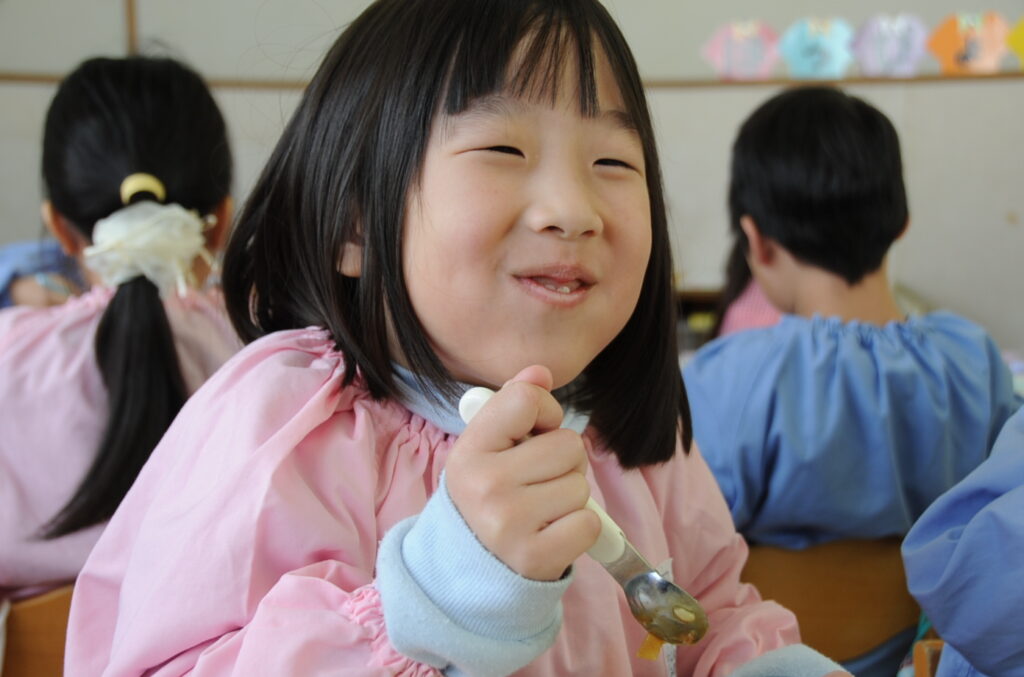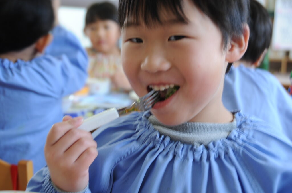 はい、すみれ組の皆さんは、今日もおいしくいただきました。「ごっちそうさまでしたぁ!!」