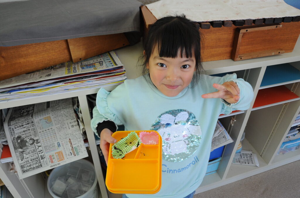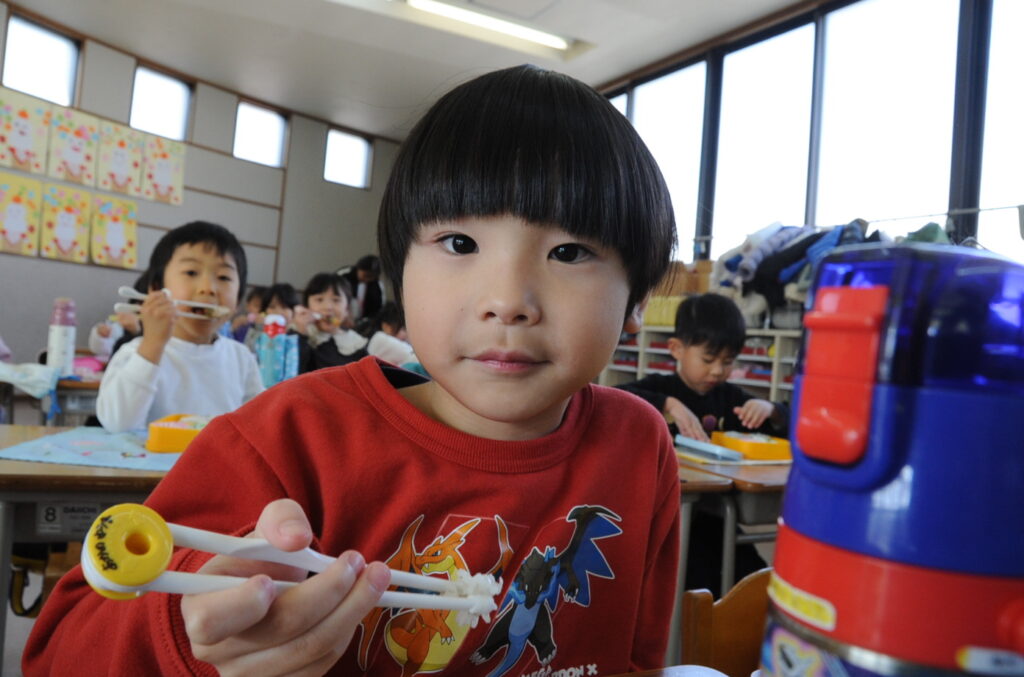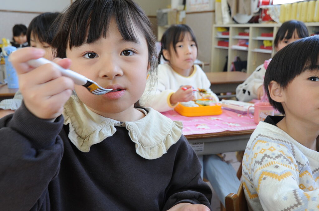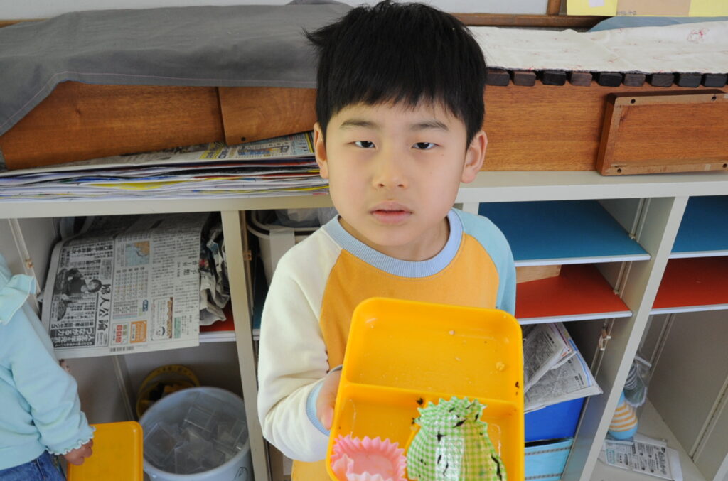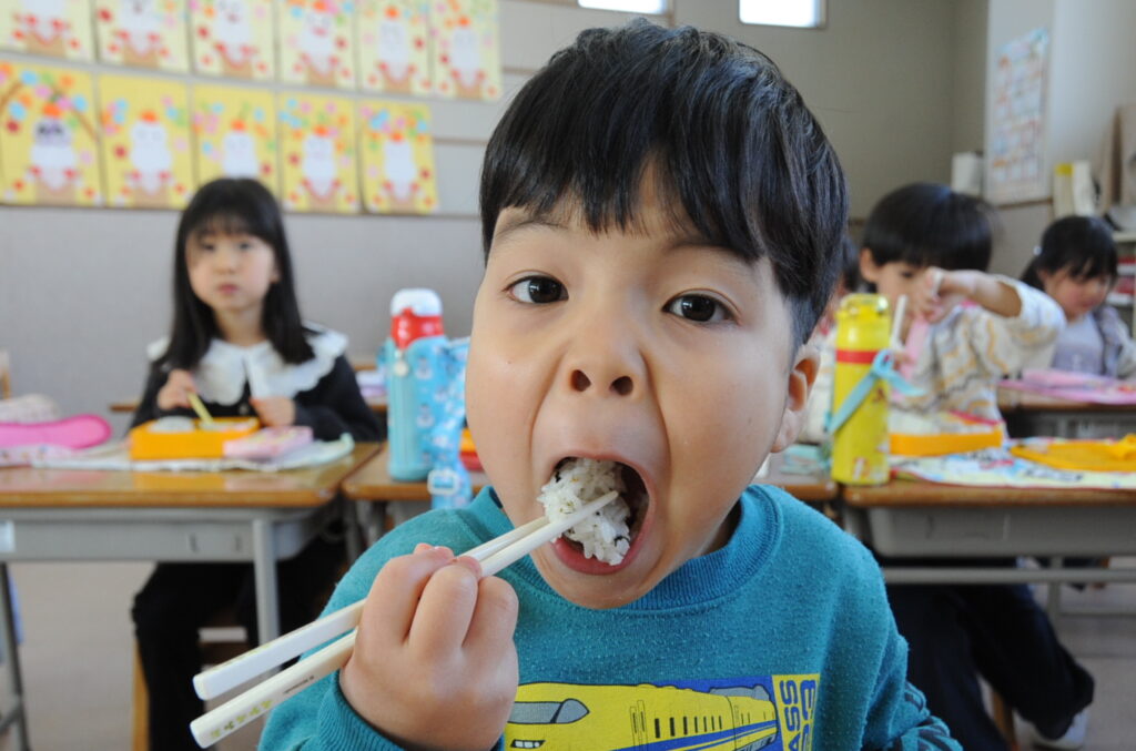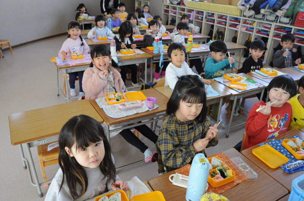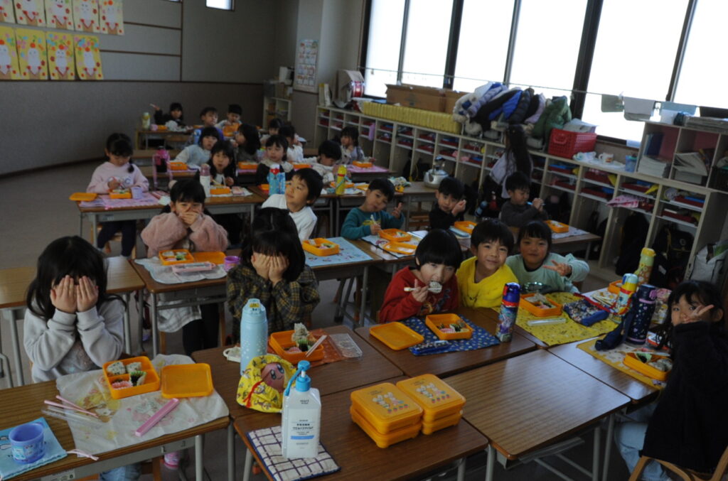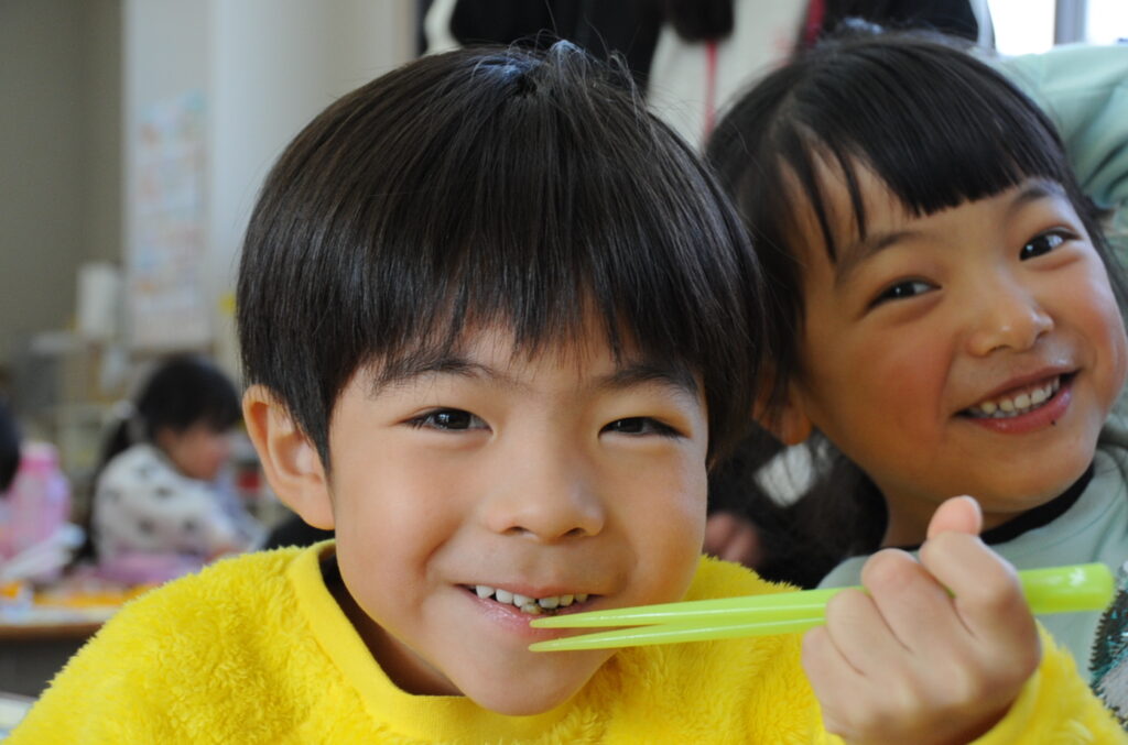 あやめ組はさすが年長さん、しっかり食べきることができました。みんなでわいわい、楽しく食べていました。たくさん食べることは、とても素晴らしいことです。大きくなりますよぉ!「食べる子は育つ!」です。