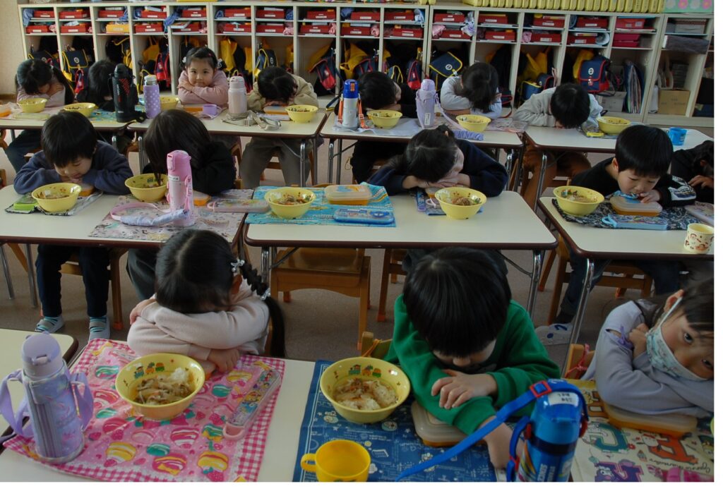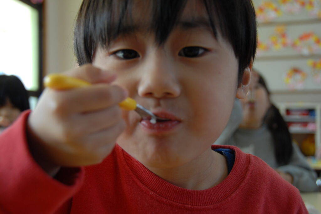 きく組さんはみんなでたのしく食べました。多くの子がおかわりをする元気いいクラスです。こりゃぁ、大きくなりますよぉ!「食べる子は育つ!」です。
