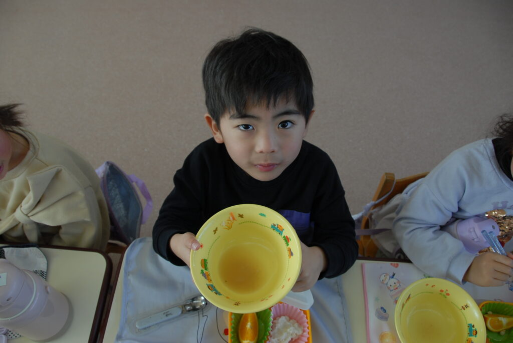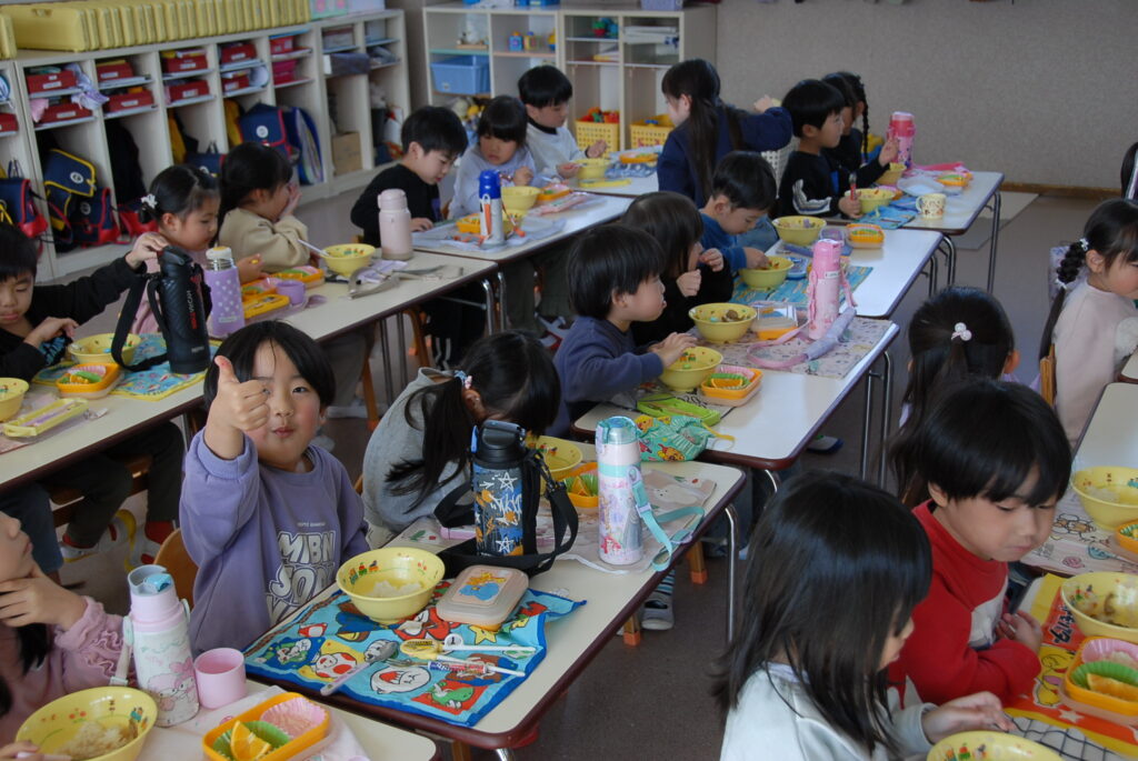 はい、きく組の皆さんは、今日もたくさんいただきました。「ごっちそうさまでしたぁ!!」