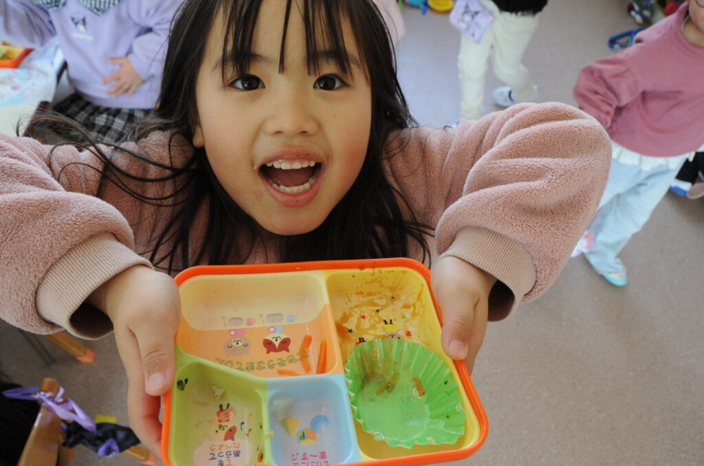 ばら組は、皆さんとても楽しそうに食べています。まさに「ランチを楽しんでる!」って感じです。おいしく食べると全て栄養になりそうですね。とても素晴らしいことです。大きくなりますよぉ!「食べる子は育つ!」です。