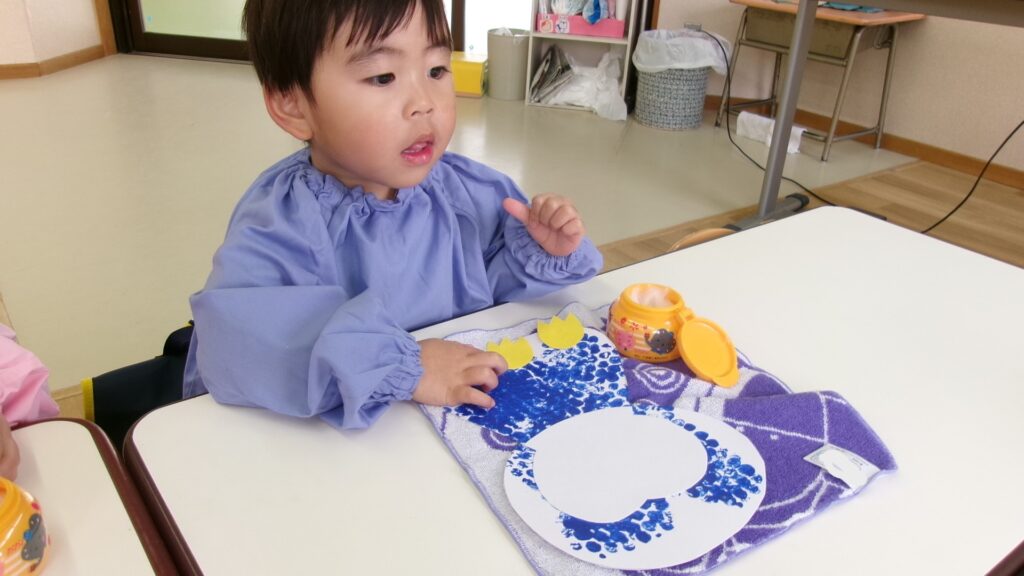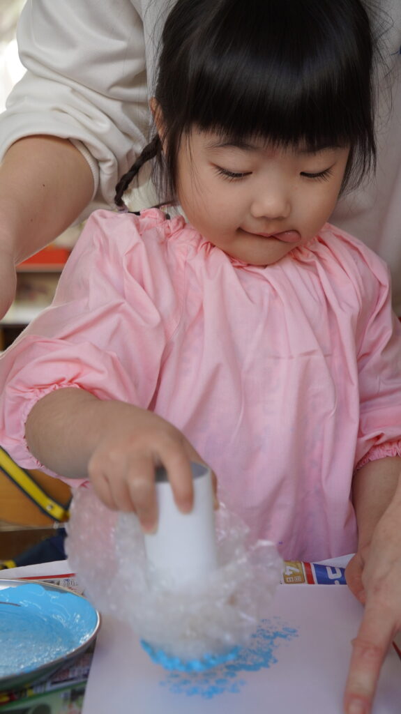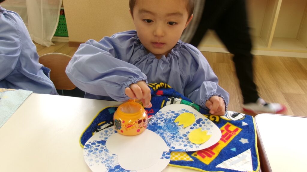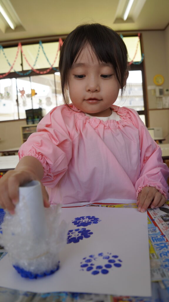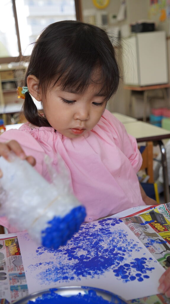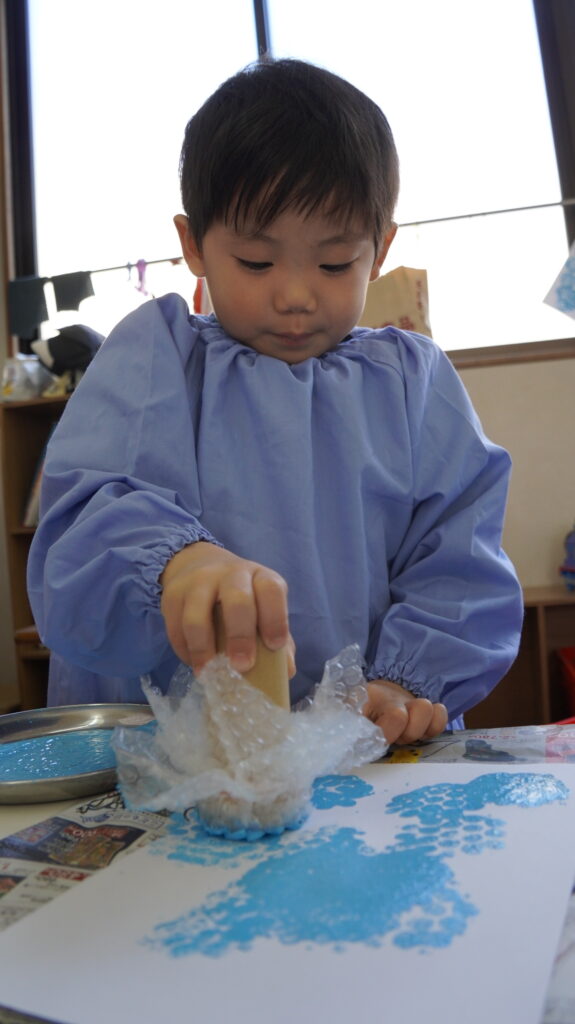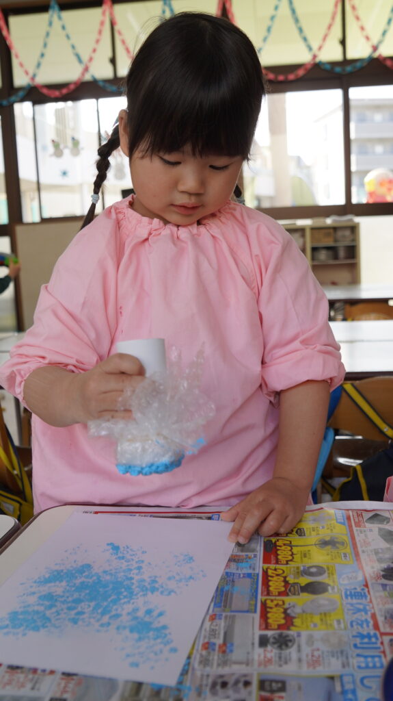 梱包用のプチプチを使ってスタンプ遊びを楽しみました。