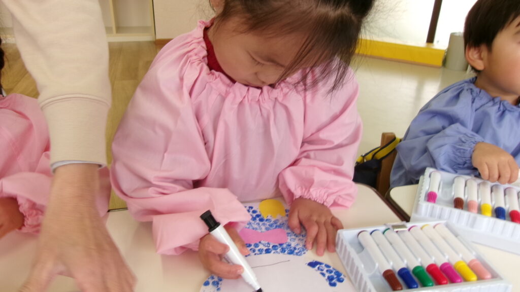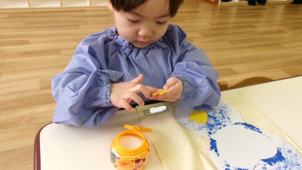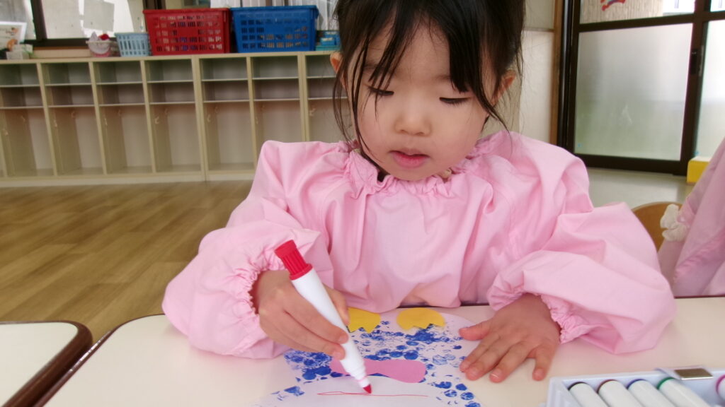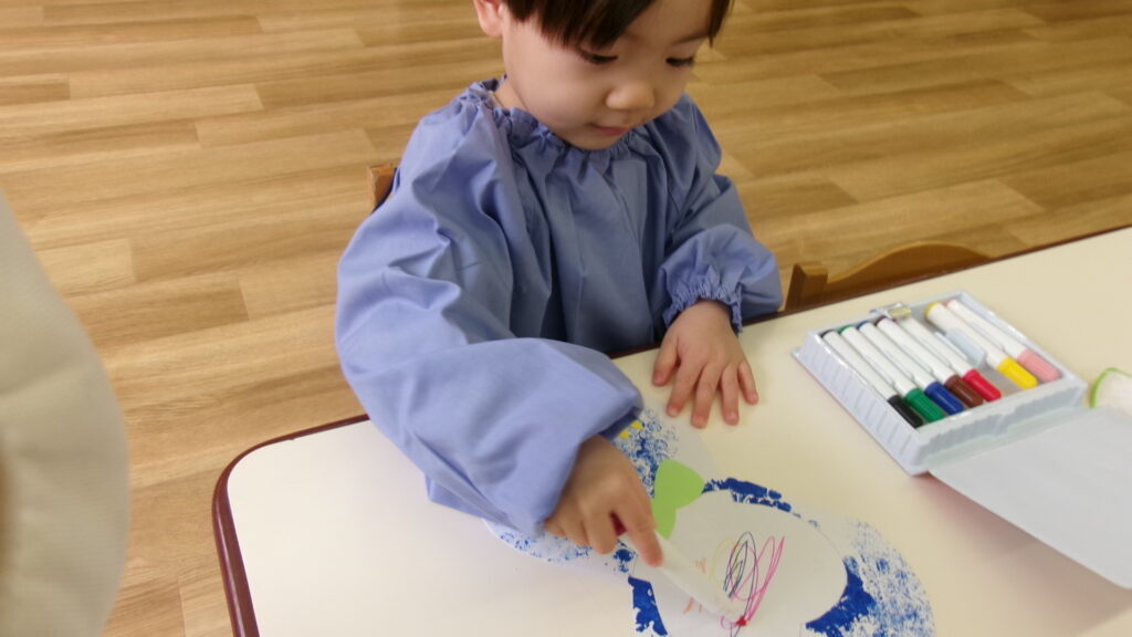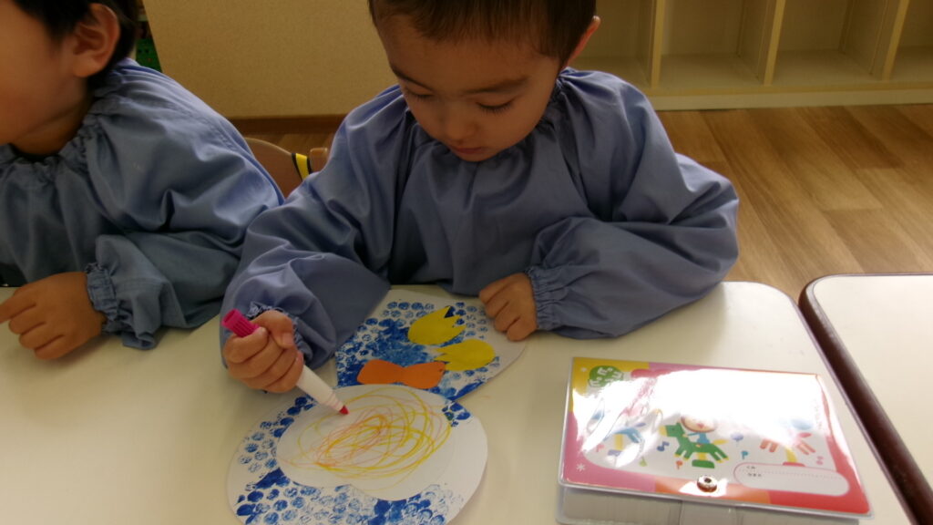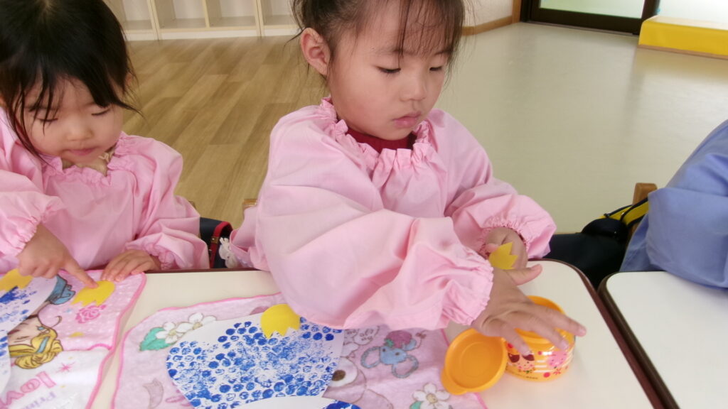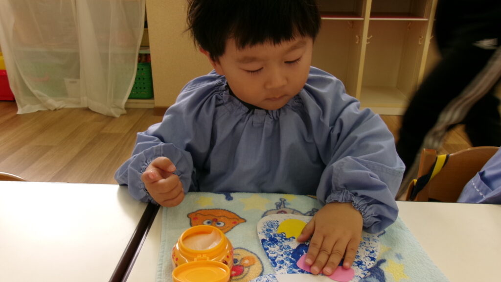 梱包用のプチプチを使ってスタンプ遊びを楽しみました。
