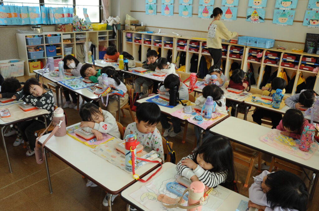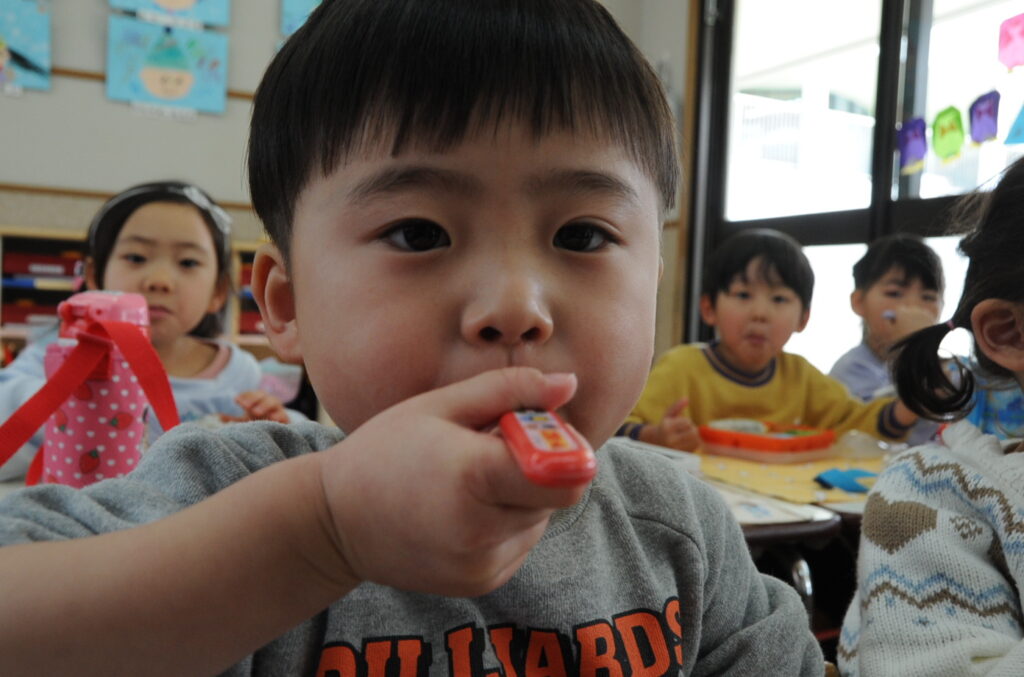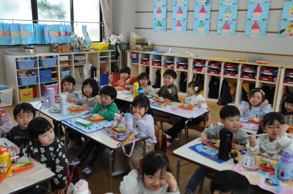 はい、くり組の皆さんは、今日もおいしくいただきました。「ごっちそうさまでしたぁ!!」
