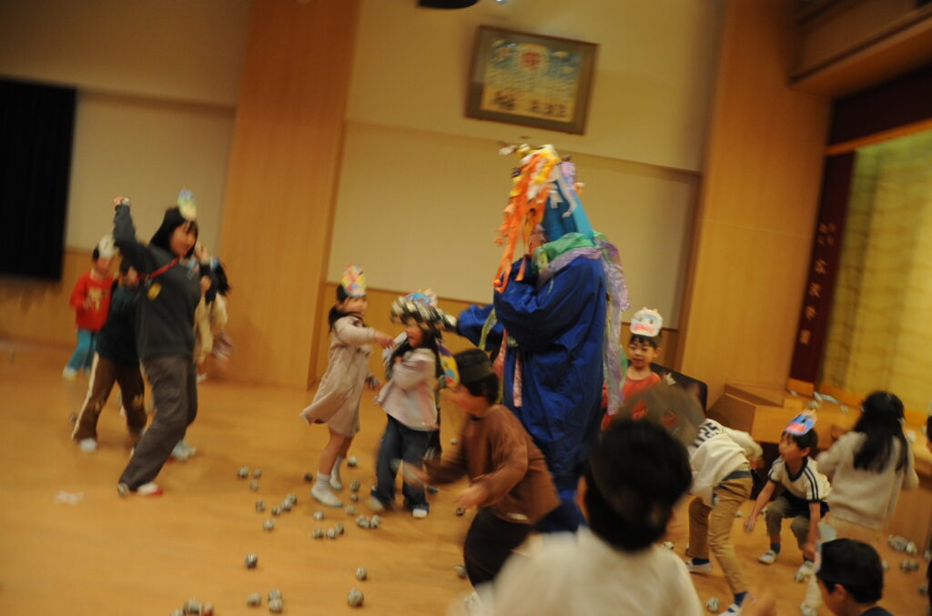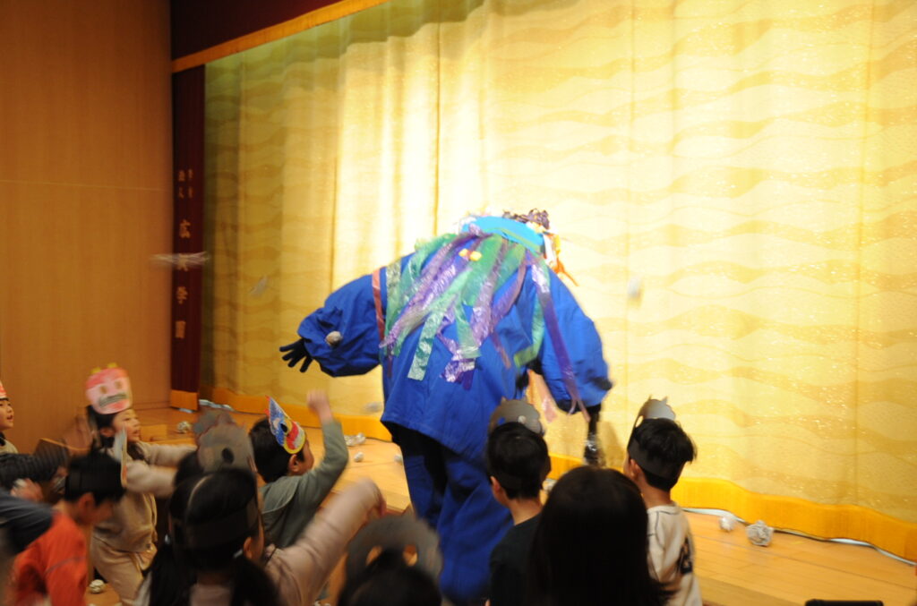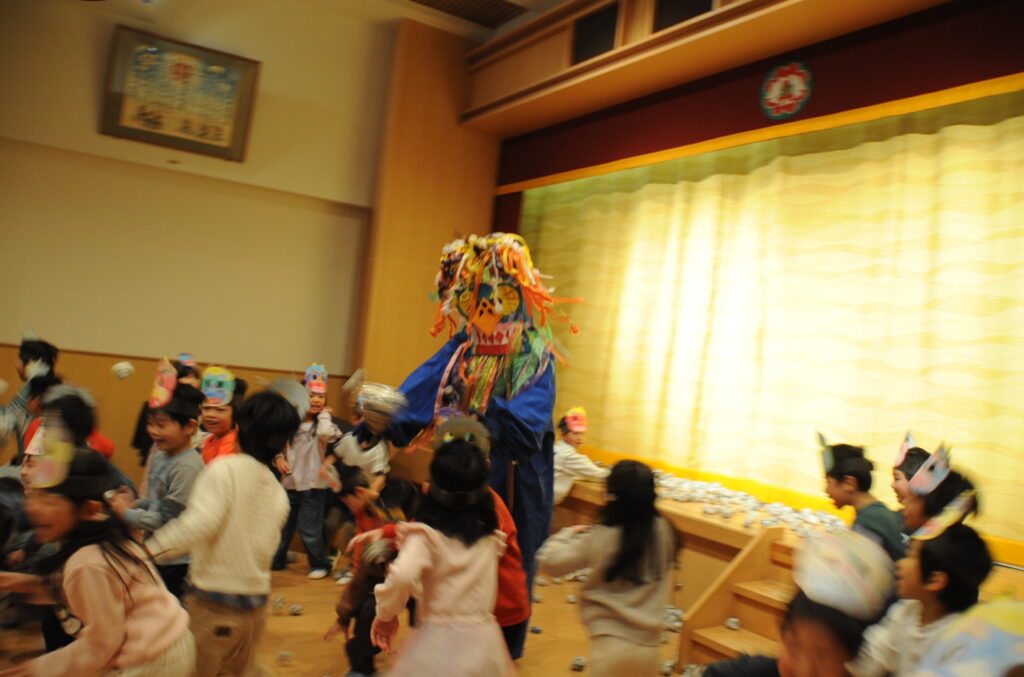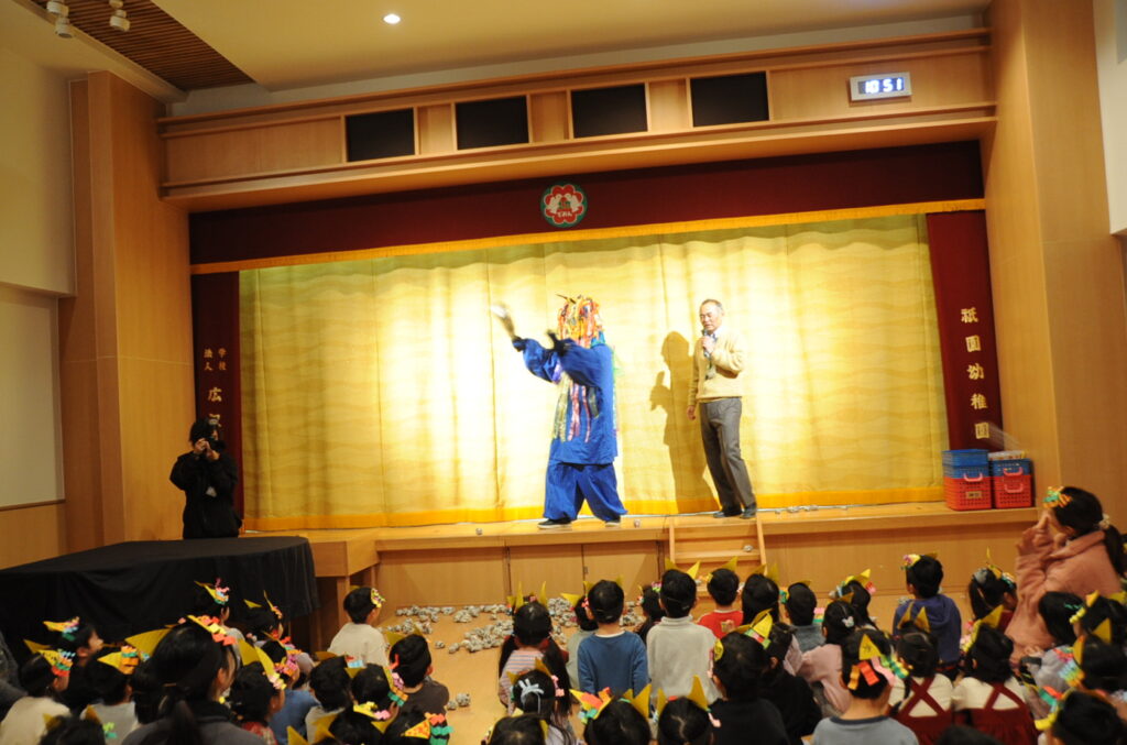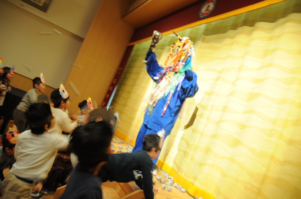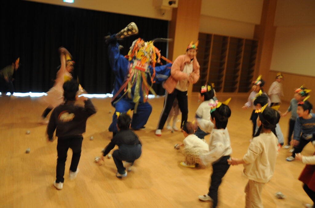 「悪い子はおらんかぁ?」「はぶれる子はおらんかぁ?」今日は、節分です。祇園幼稚園の子ども達の心の中にいるおにを追い出す日です。恐ろしいおにがやってきたので、思わず涙が出てしまった子がいましたが、おにをやっつけようとどの子もがんばりました。なお、写真のコメントは、いつものように制作者の想像です!あしからず!!