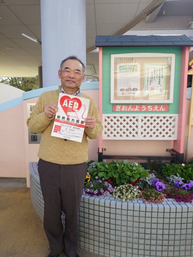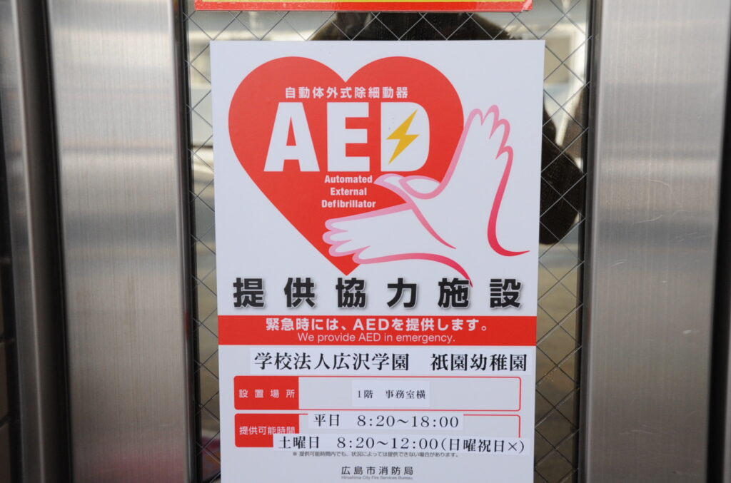 この度、広島市消防局AED提供協力施設として認定をいただきました。万が一の事態が発生した場合は、「地域での助け合い」の精神により、「一人でも多くの命を救う」ため、AEDの適切な管理に努めます。