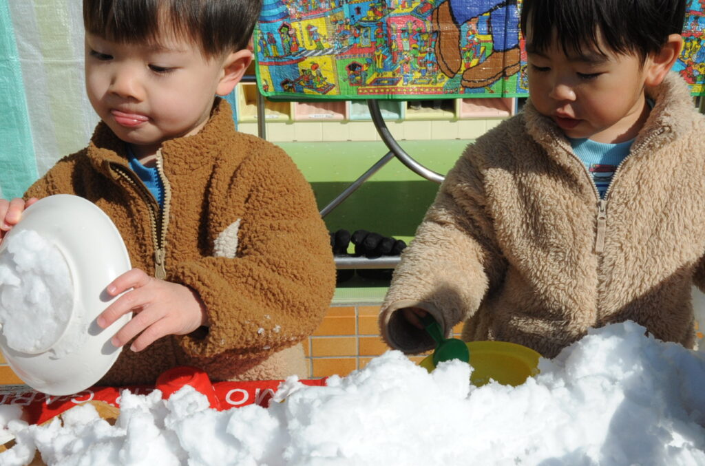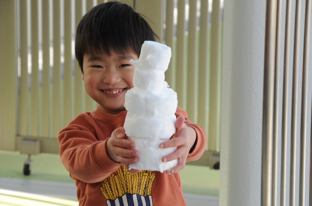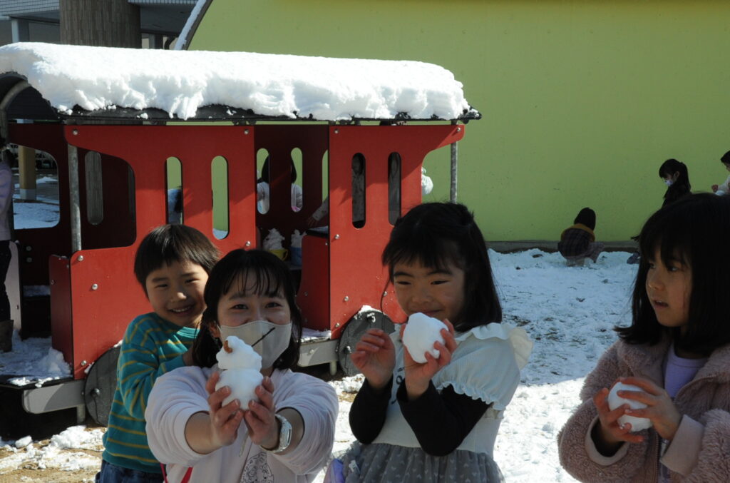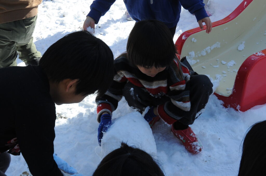 大人は雪が苦手ですが、子どもは大好きです。雪は想像を広げることができるすばらしい教材です。今日も、思い思いの形にして遊ぶことができました。でも・・・、もう雪は勘弁してほしいですねぇ!