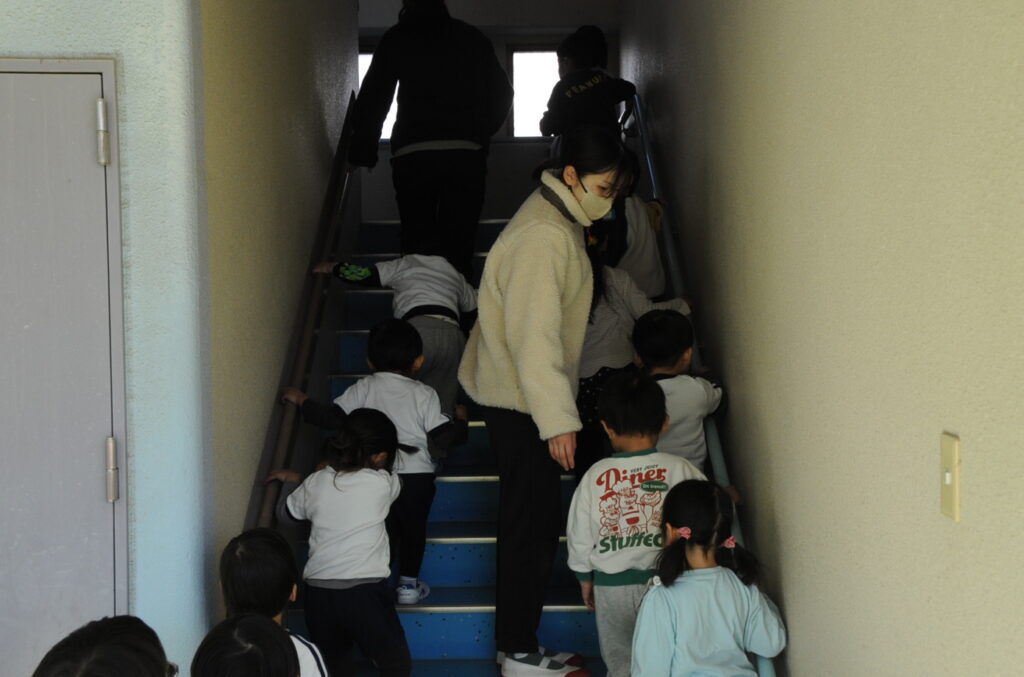 どの子も真剣に避難することができました。年中、年長の子ども達も静かに待機できました。もし、万が一のことが起こっても、これで大丈夫です!