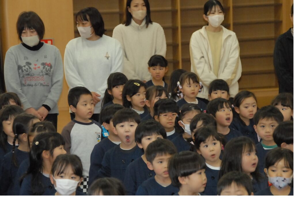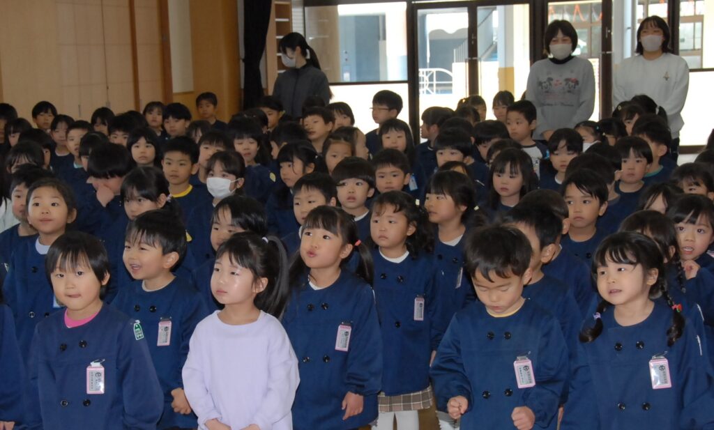 3学期終業式で今年度の行事が終わりました。次回は、4月8日(水)令和8年度1学期始業式でお会いしましょう。なお、新年度のクラスと担任については、園だより3月号でお知らせしたとおり、4月1日にコミュなび(名簿センター→園児情報の確認・編集→お子様の名前の下に新しいクラス名)で確認していただくことになりました。担任は、同日に一斉メール配信でお知らせしますのでご承知おきください。