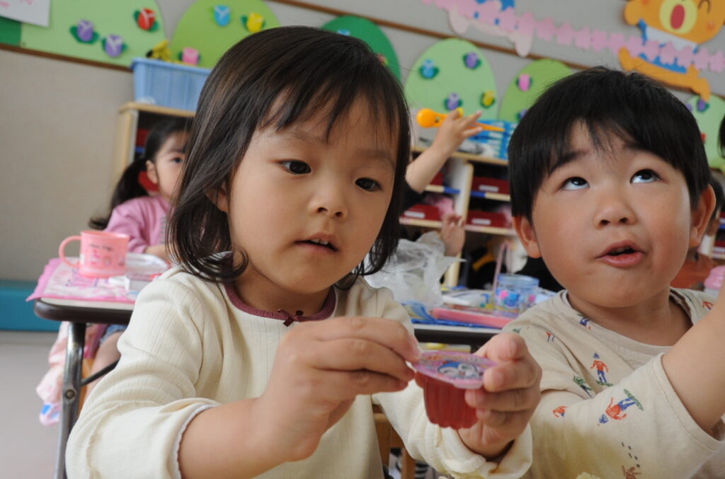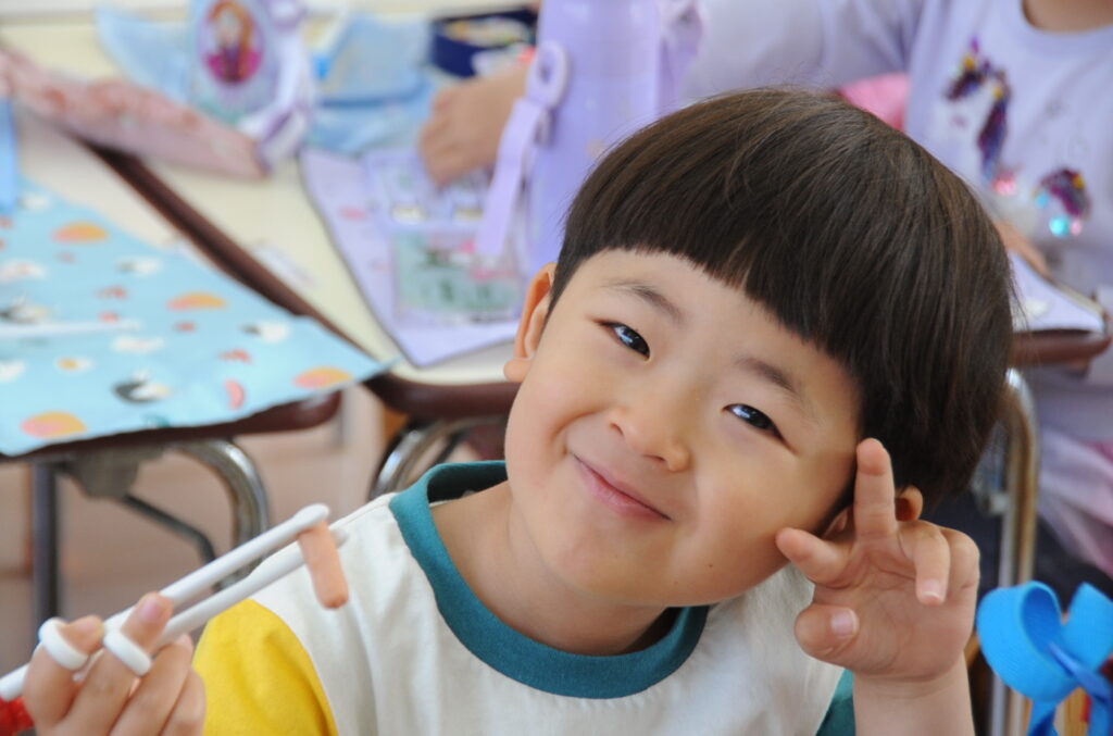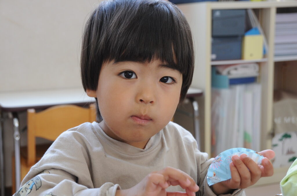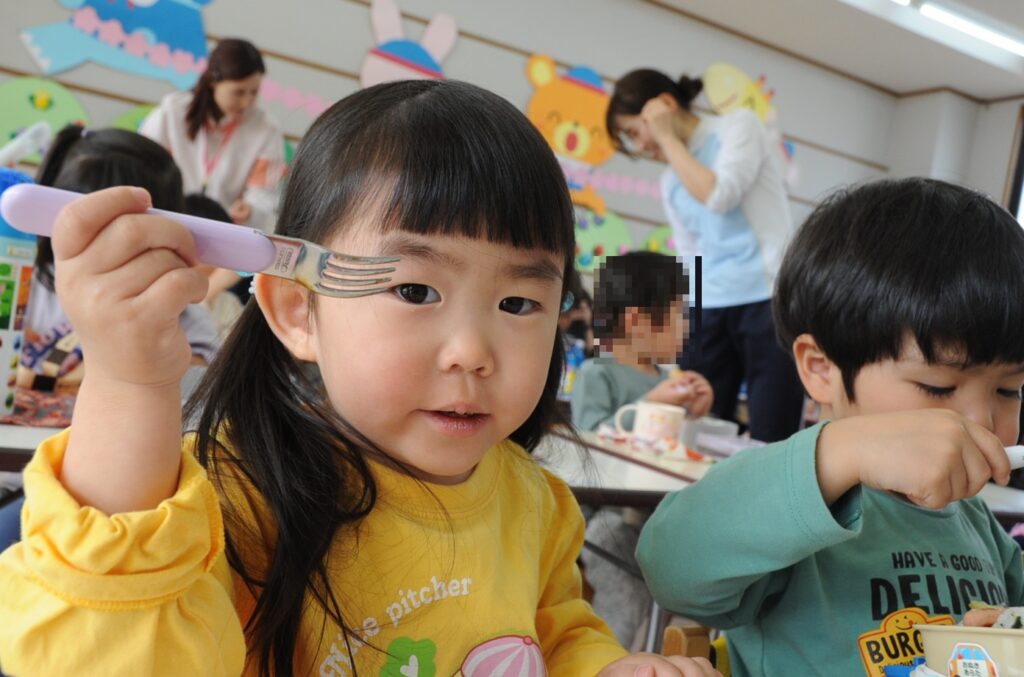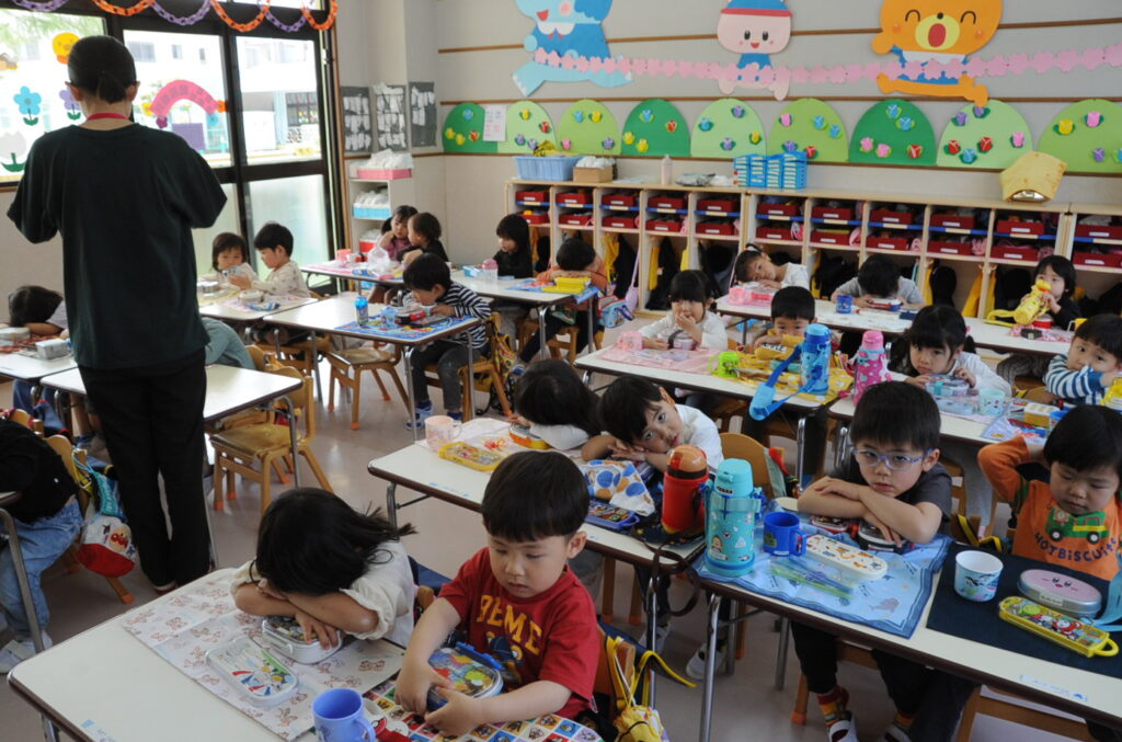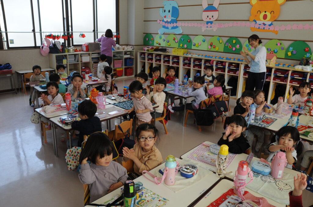 祇園幼稚園は、火、水、木がおうちの方の愛情弁当です。お弁当をつくるのは大変でしょうが、どの子も喜んで食べています。おうちの方はこの1年間、完食したお弁当箱を見るのを楽しみに、愛情たっぷりのお弁当をがんばって作ってください。よろしくお願いしますね。