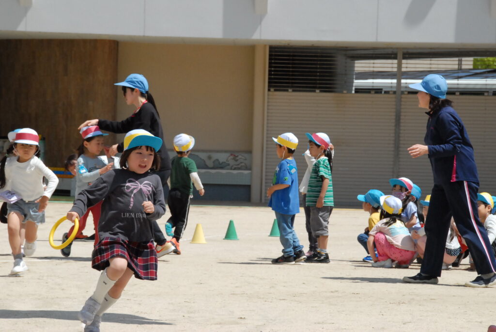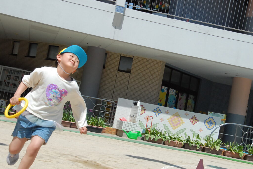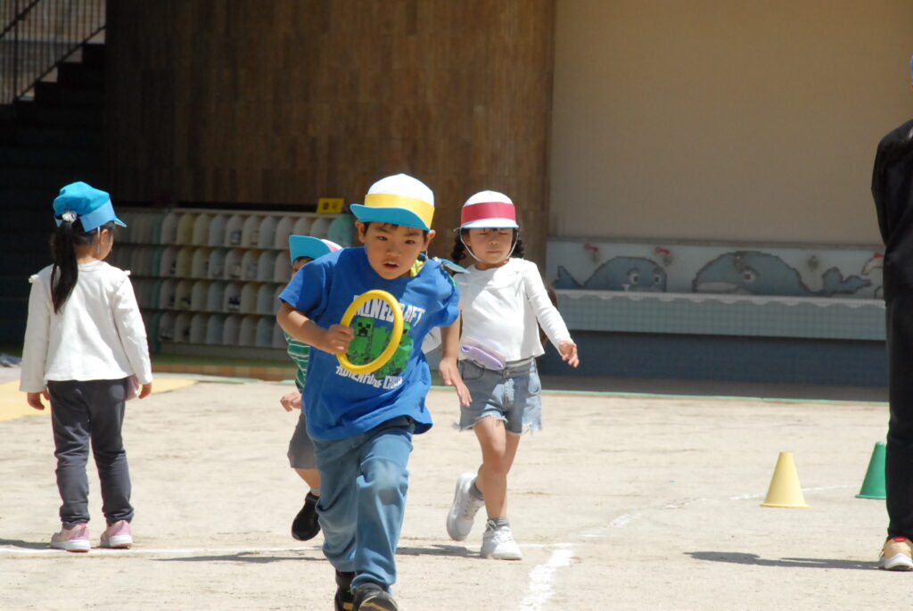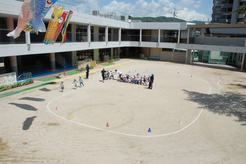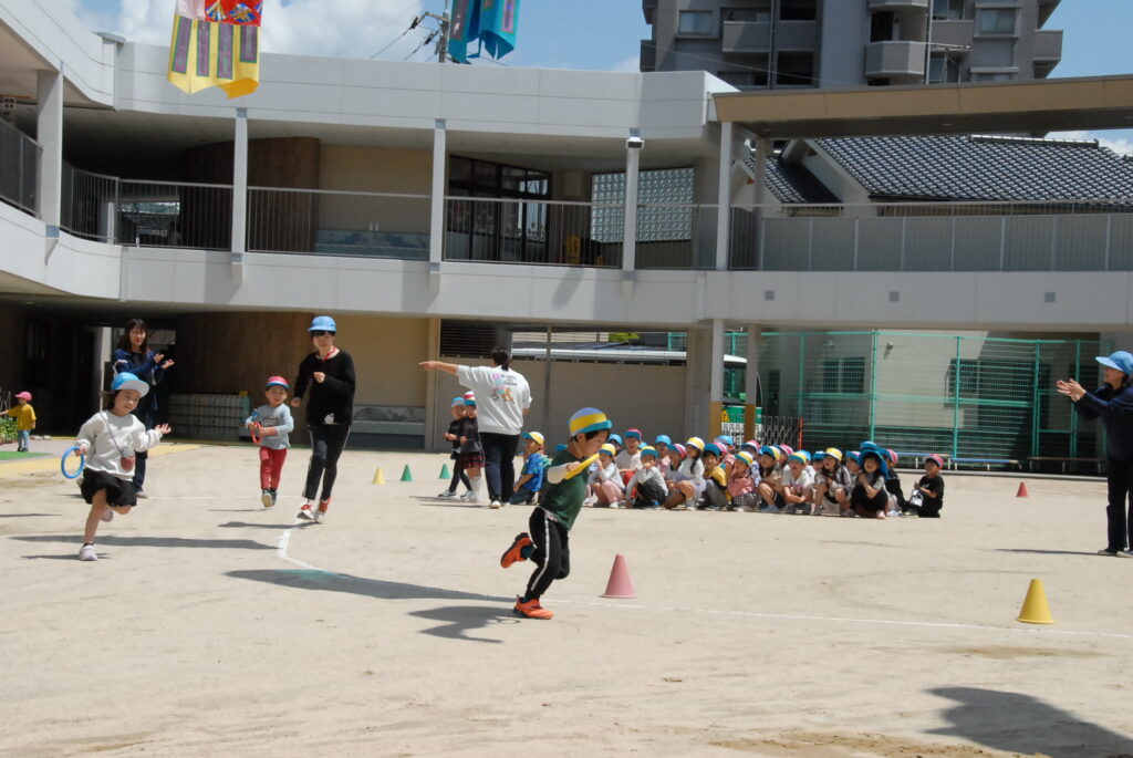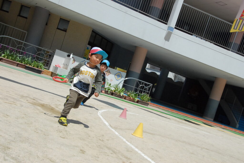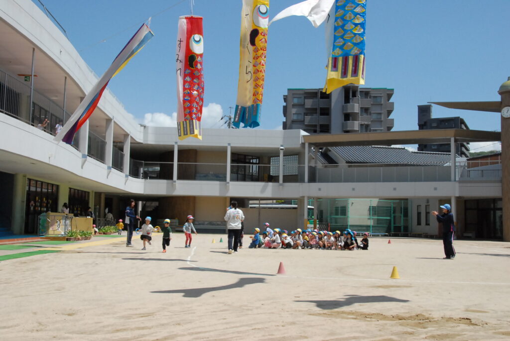 さすが、年長さん達です。リレーの回数を重ねると、走り方もバトンタッチもうまくなってきています。お空では、大きなこいのぼりが子どもたちの走りを応援してくれていました。どこかの鯉も頑張ってほしいのですが…。懲りずに応援しましょ!!