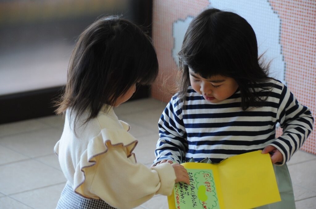 これで、令和7年度の「いちご教室」が終了です。今年度もたくさんのいちごちゃんがやってきました。次にいちごちゃんにお会いするのは、令和8年度の入園式ですね。その時は、ピンク帽子の年少組さんです。凜々しい顔つきになってお会いできることを楽しみにしています。1年間、ありがとうございました。